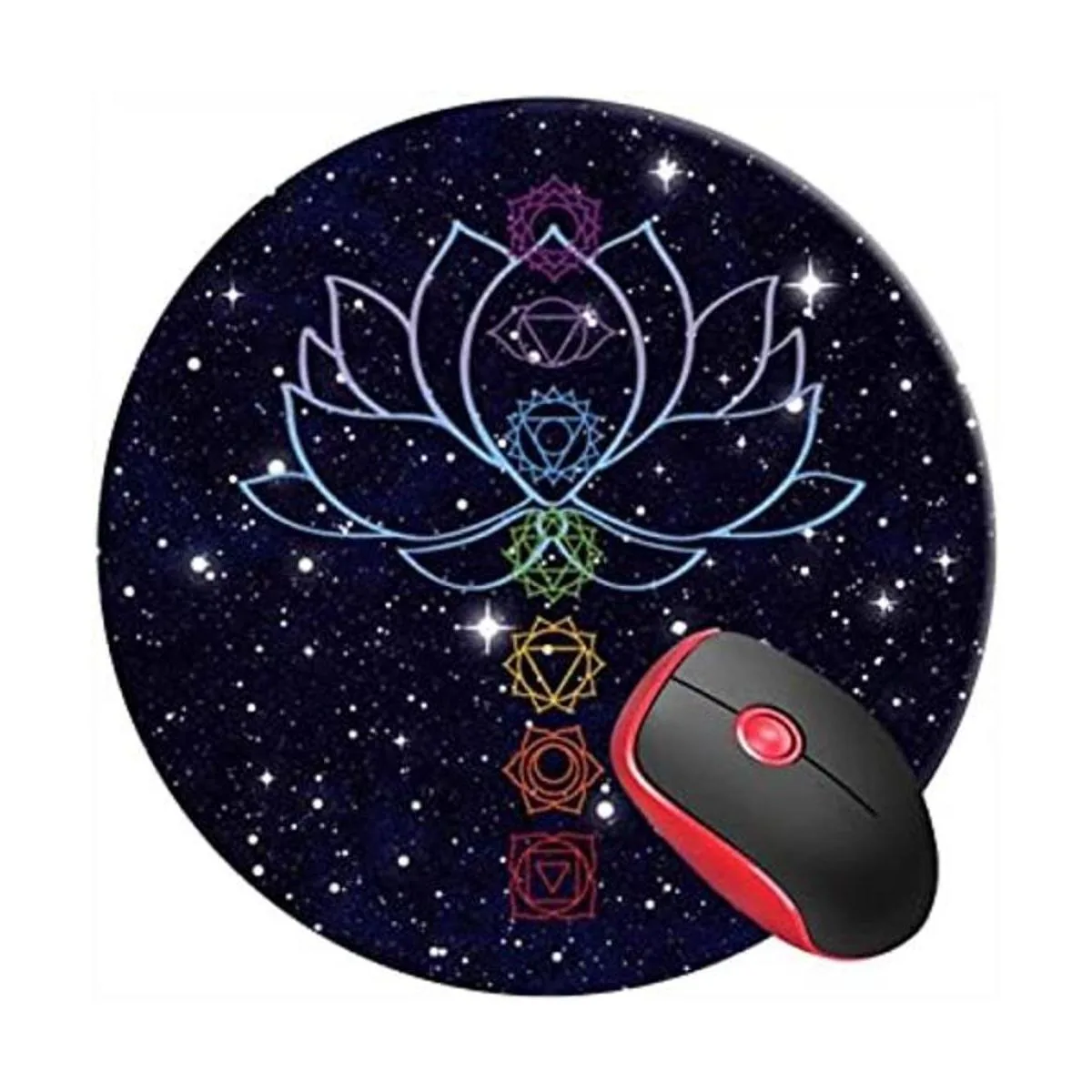 Alfombrilla de ratón redonda con diseño de flor de loto y chakras zen, base de goma antideslizante para ordenador portátil y ordenador