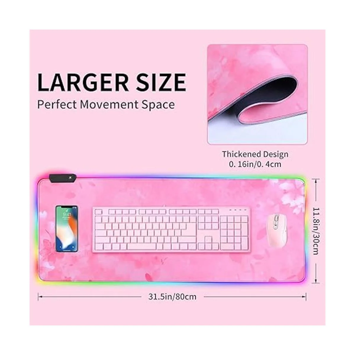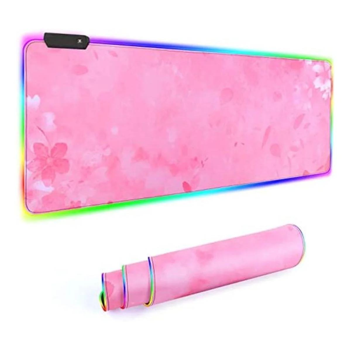 Alfombrilla de ratón RGB para juegos, alfombrilla de ratón LED grande con 12 modos de iluminación, teclado para juegos, base de goma antideslizante, almohadilla de escritorio para juegos, almohadilla de alto rendimiento optimizada para jugadores, 31.5 x 11.8 pulgadas rosa