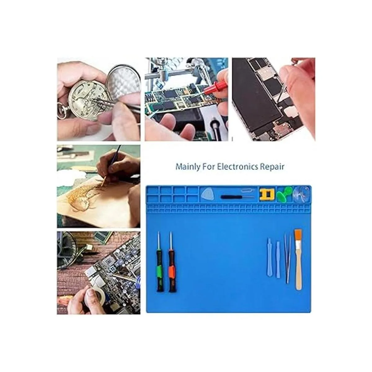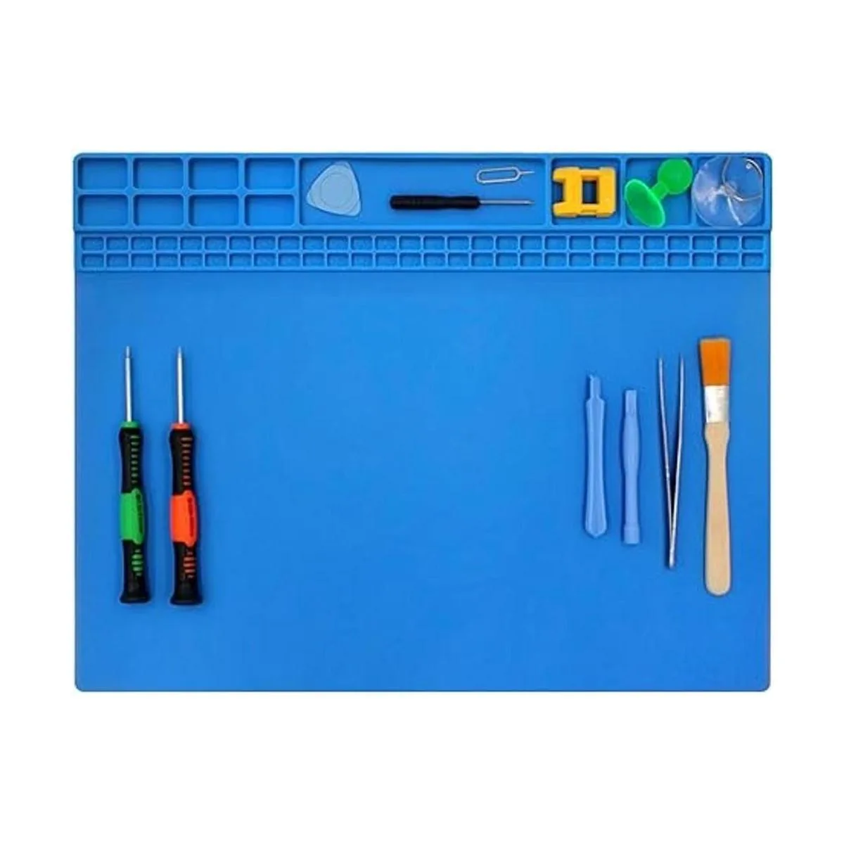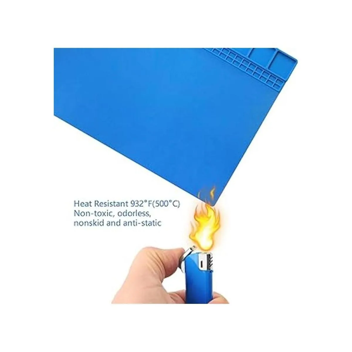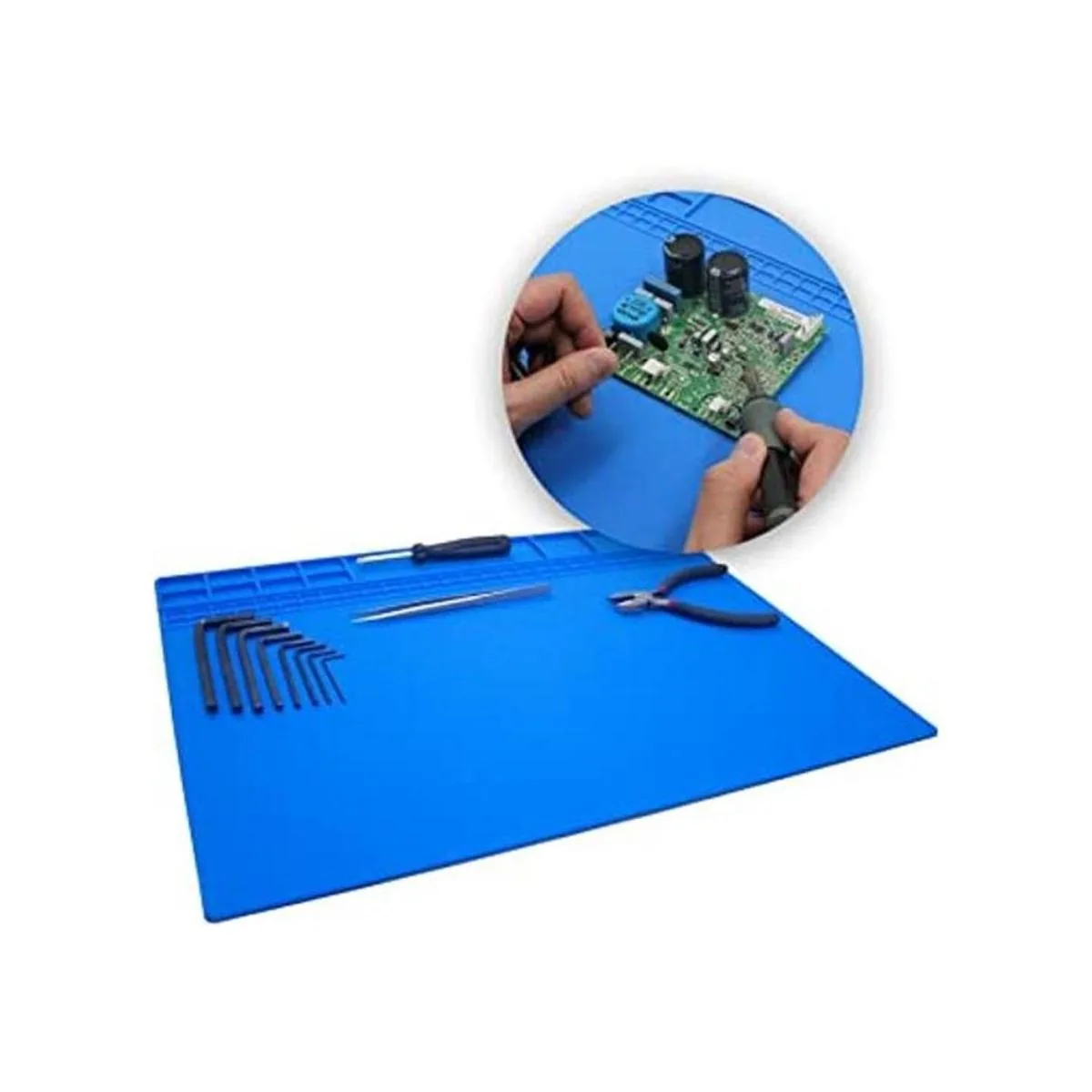 Alfombrilla de soldadura grande de silicona resistente al calor de 932 F para reparación de aire caliente para iPad, iPhone, placa de circuito y otras reparaciones electrónicas de 15.8 x 11.8 pulgadas azul