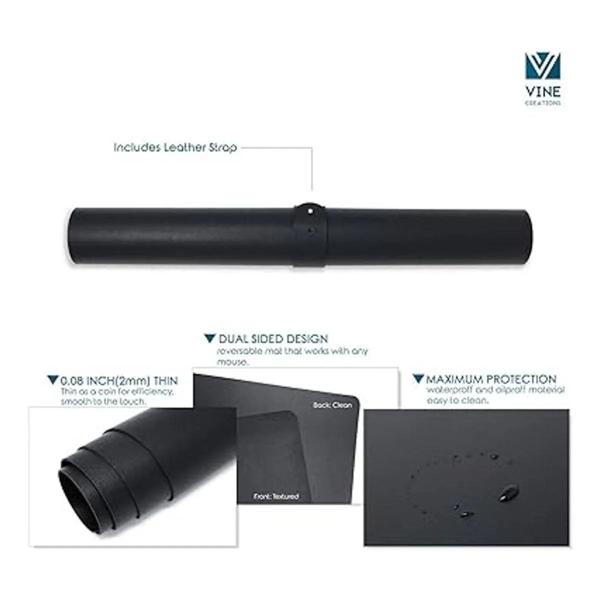 Calidad prémium: máxima protección para tu escritorio. Piel sintética fácil de limpiar, sin olores desagradables. Proporciona un aspecto elegante, moderno y profesional a tu escritorio. La alfombrilla de ratón de escritorio de Vine Creations te ayudará a mantener tu escritorio organizado y limpio.