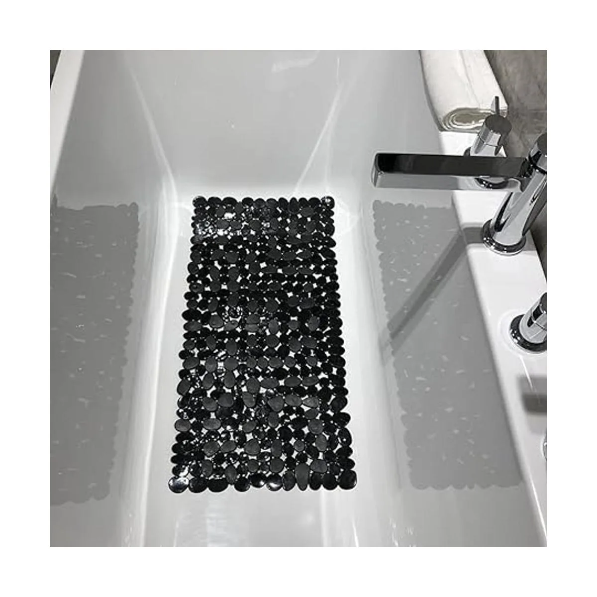 Alfombrillas de baño antideslizantes de piedra guijarros, antideslizantes, lavables a máquina negro, 14 pulgadas de ancho x 27 pulgadas de largo, comprueba el tamaño