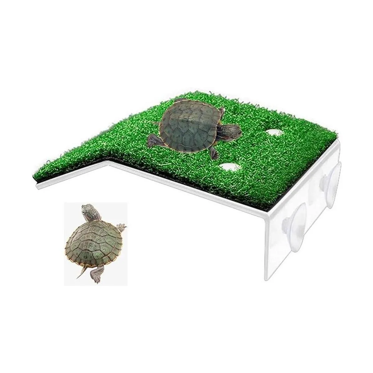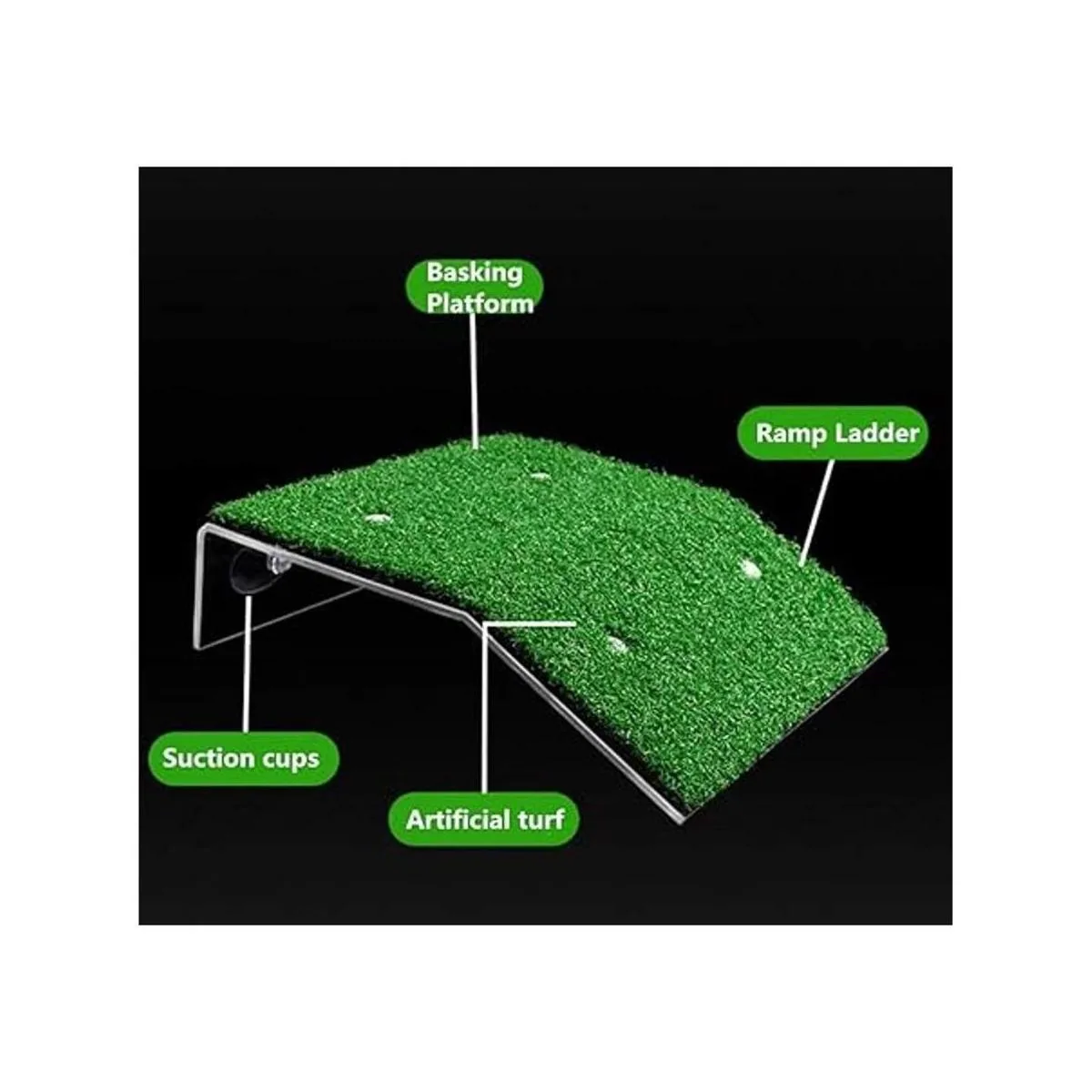 Césped artificial: lo que utilizamos es césped verde artificial, que es suave y antideslizante, lo que hace que la mascota sea fácil de escalar, y diseña una longitud de escalada razonable y ángulo de escalada dando a la tortuga un ambiente de hábitat impecable y cómodo.