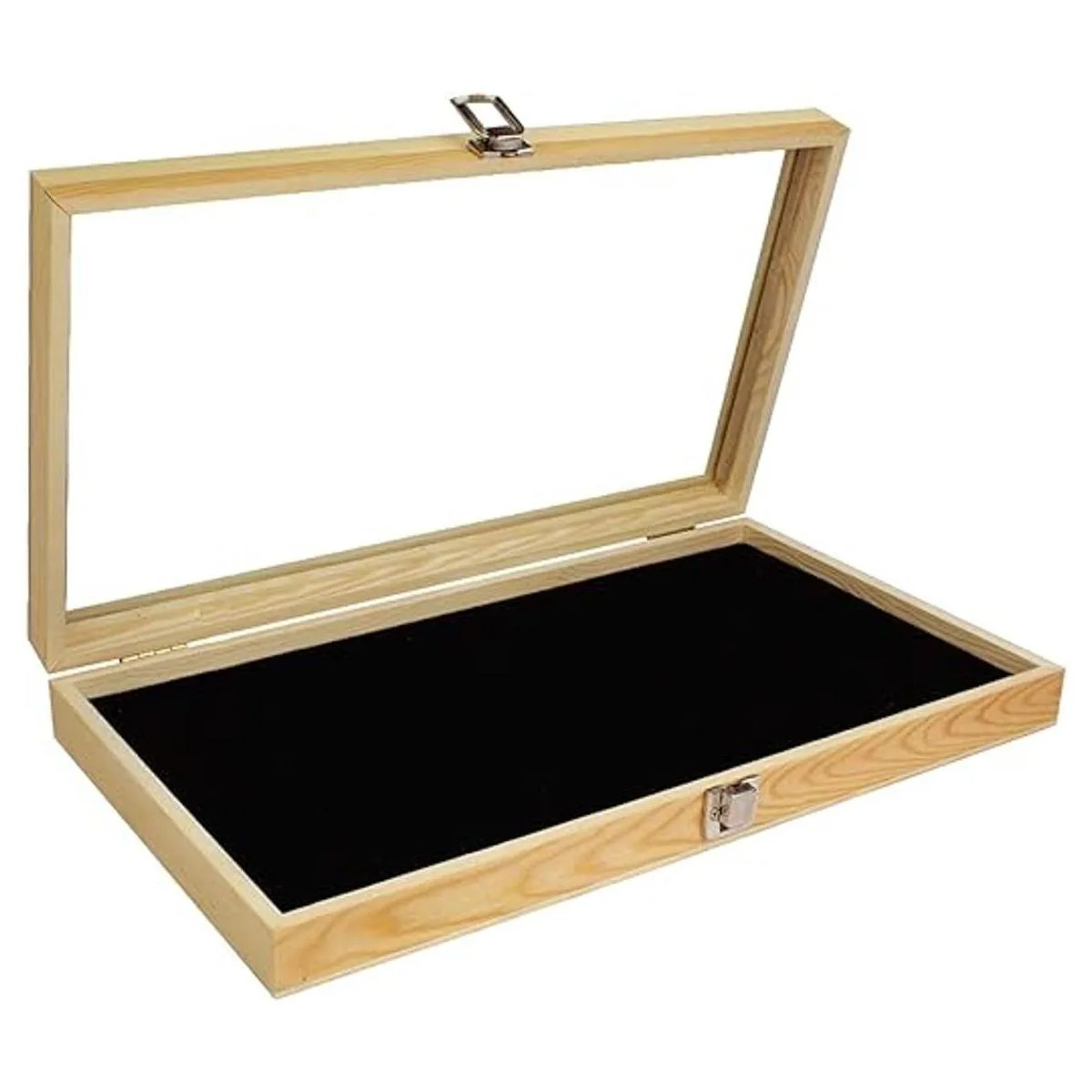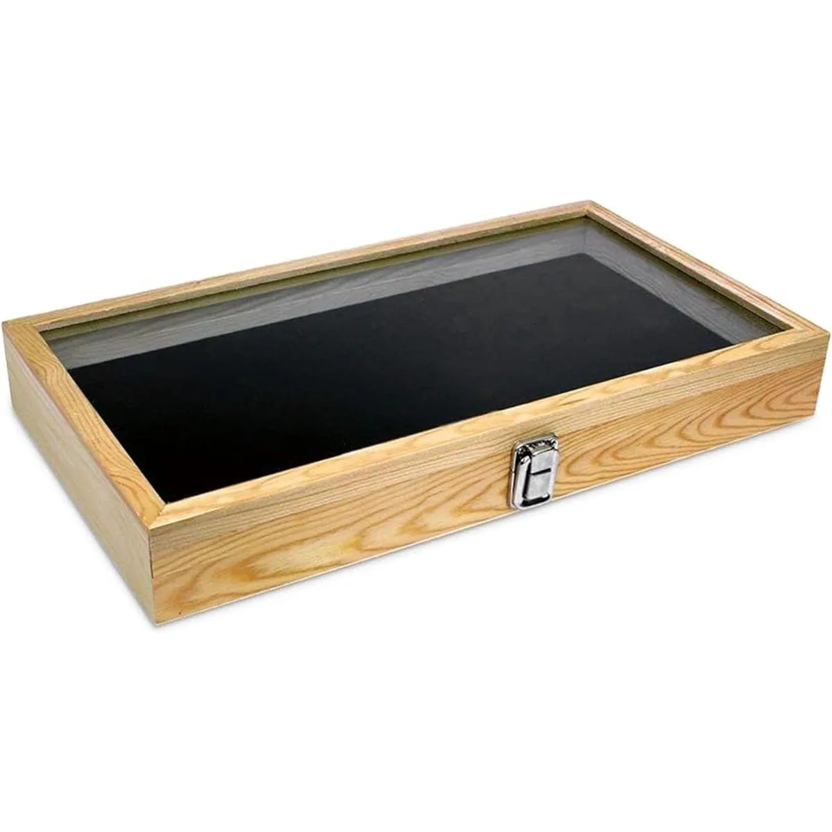Alhajerocaja para almacenar cuentas con tapa de vidrio templado y terciopelo negro. Caja de muestra de medallas, premios, alhajas y cuchillos.