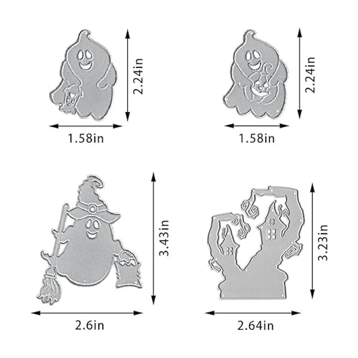 El paquete incluye: 1 troquel de castillo de árbol de Halloween 1 fantasma montando una escoba. Las dimensiones del troquel de corte, consulta la segunda imagen de la imagen principal. Perfecto para tarjetas y detalles de página de álbumes de recortes.