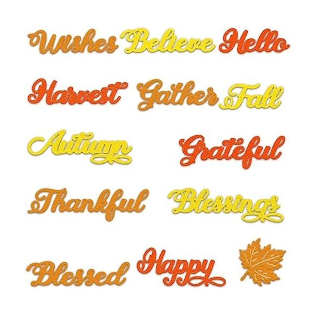 ALIBBON Troqueles de palabras de otoño para hacer tarjetas y álbumes de recortes, troqueles de corte de palabras de Acción de Gracias, moldes de plantilla de metal, palabras de bendición de otoño, troqueles para álbum de fotos, decoración de tarjetas de grabado de papel