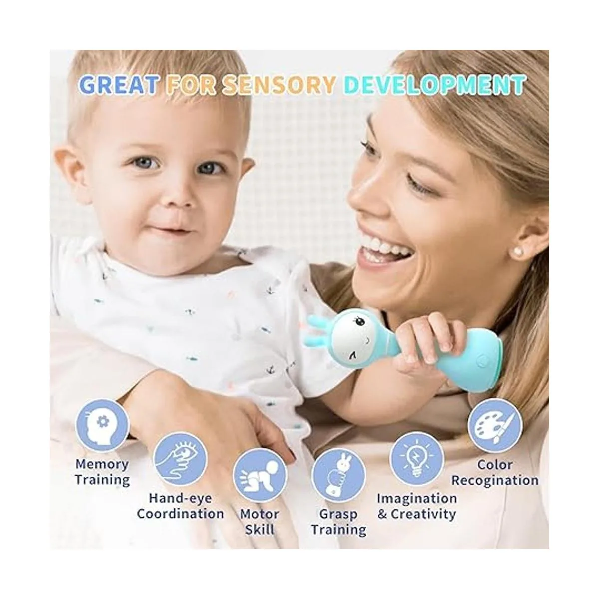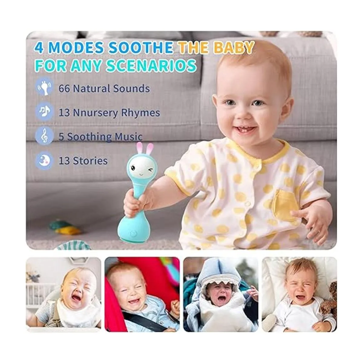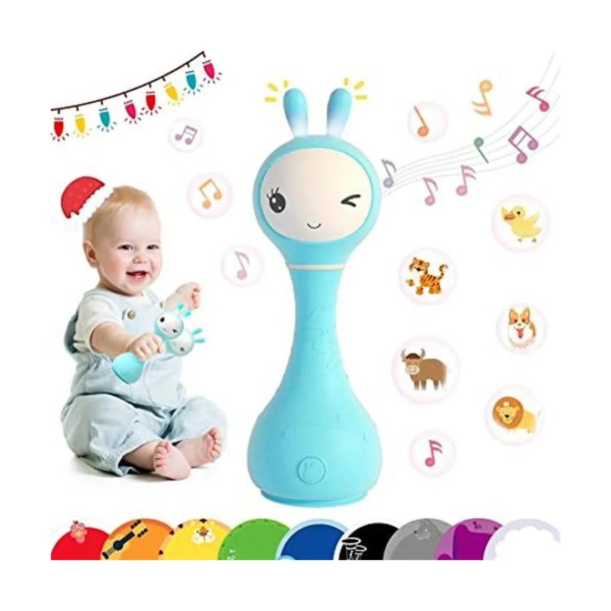 Alilo Bunny Smarty Sonajero musical iluminado con luz, fomenta los hitos del desarrollo, juguetes para bebés de 0 a 24 meses, recién nacidos conejito inteligente, azul