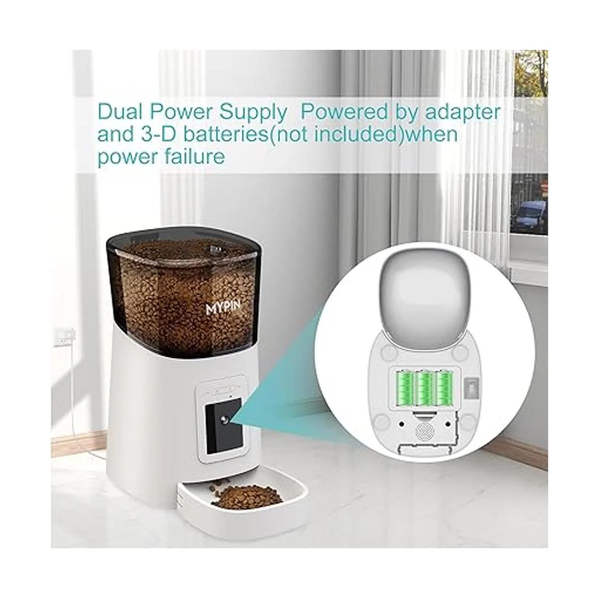 Comedero de control remoto con aplicación WiFi Alimentador automático inteligente para mascotas con aplicación WiFi, configura de forma remota las horas, comidas y porciones para alimentar a tus gatos o perros automáticamente o elige alimentar manualmente en tu móvil por vez. Ya sea que estés trabajando, estudiando, durmiendo o viajando, puedes cuidar de tu mascota en cualquier momento y en cualquier lugar. Compatible solo con WiFi de 2.4 GHz.