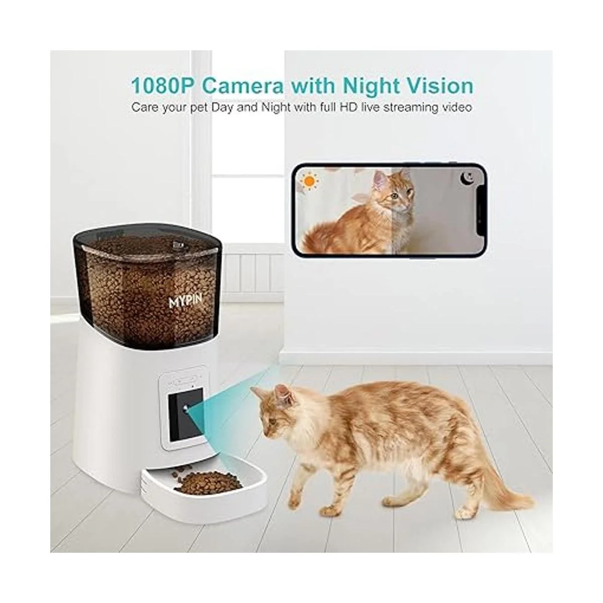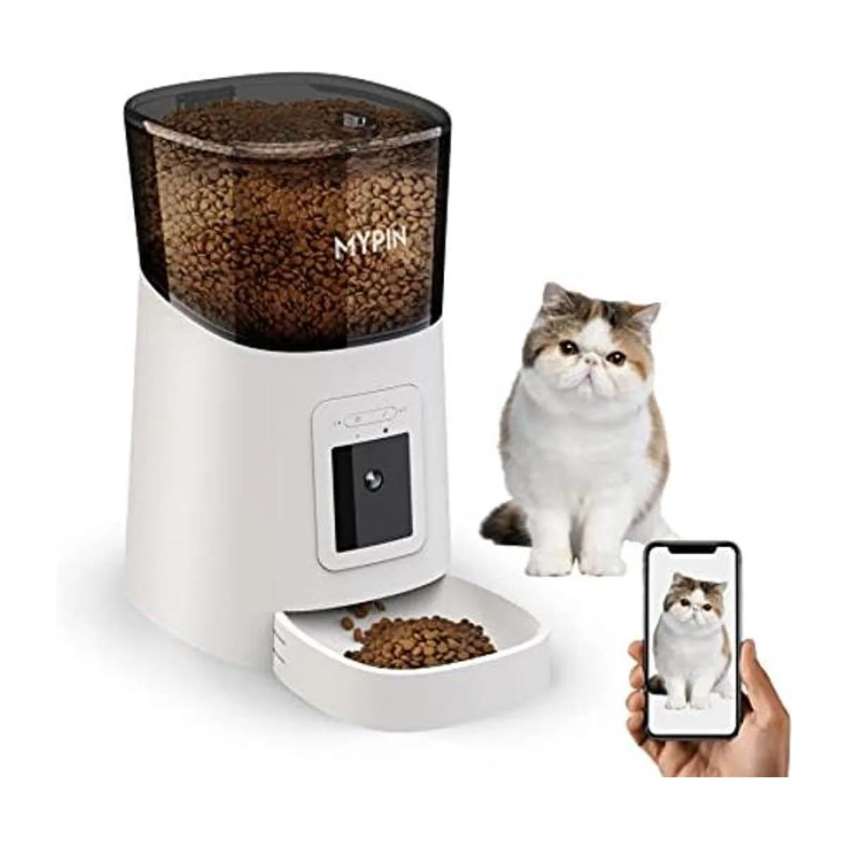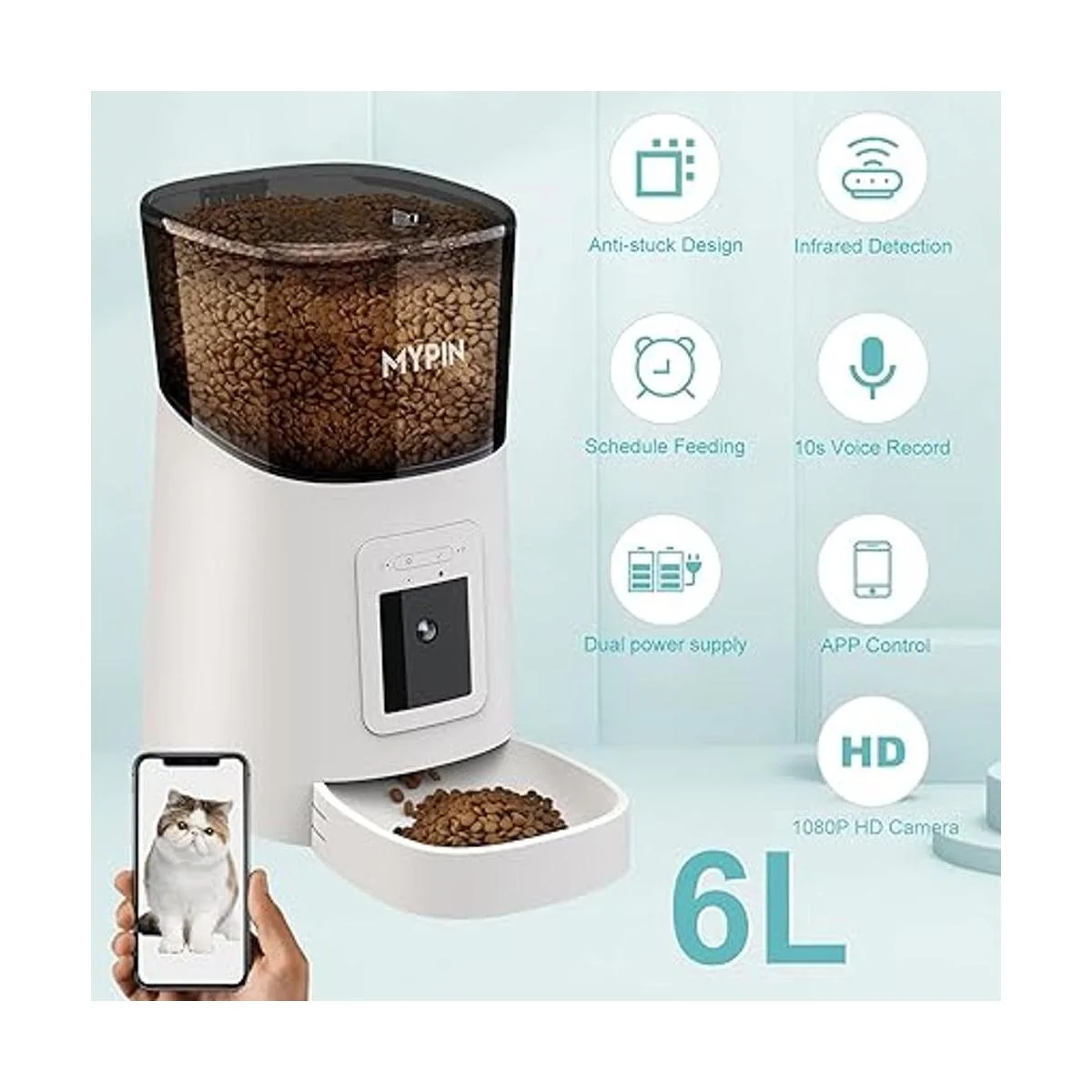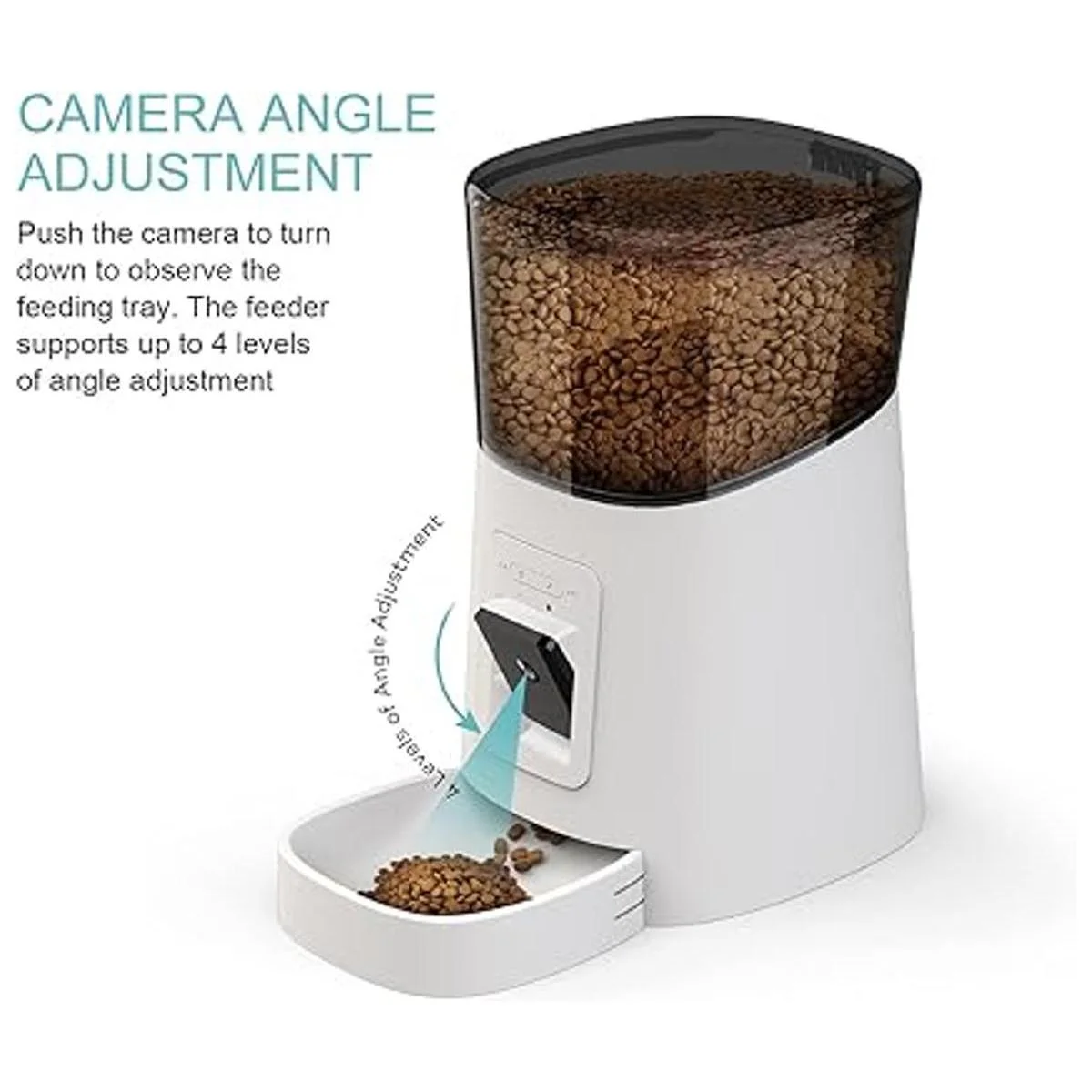 Alimentador automático de video para mascotas con cámara HD, dispensador de alimentos para gatos y perros, alimentador inteligente WiFi con cámara de audio bidireccional de 6 L, control de teléfono móvil, alimentador temporizado, bolsa desecante hasta 8 comidas por día