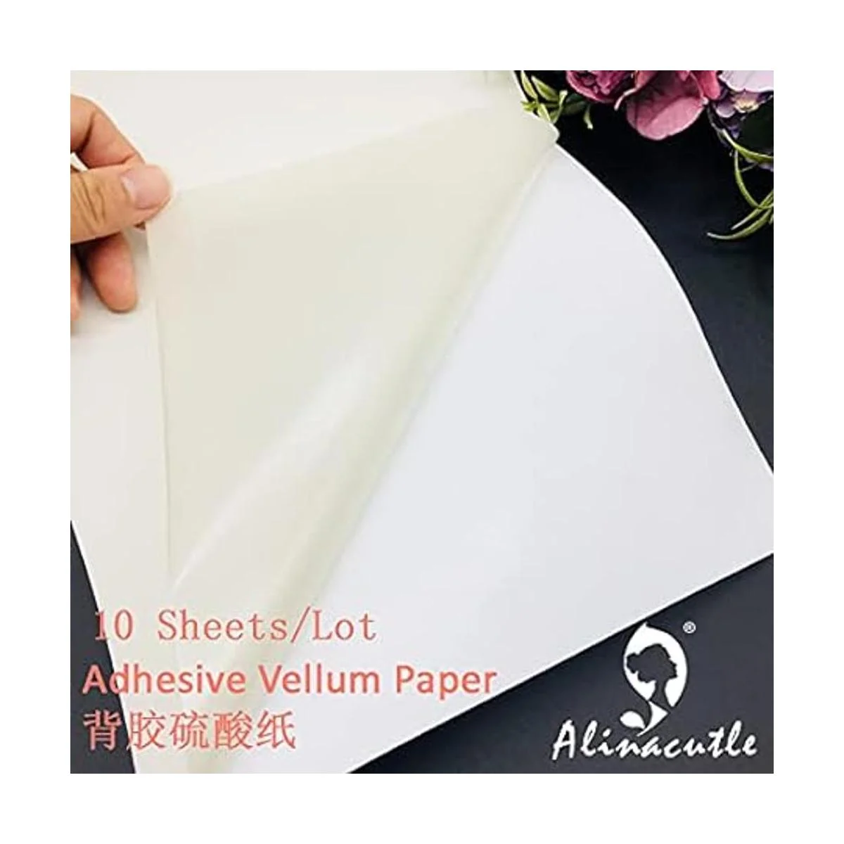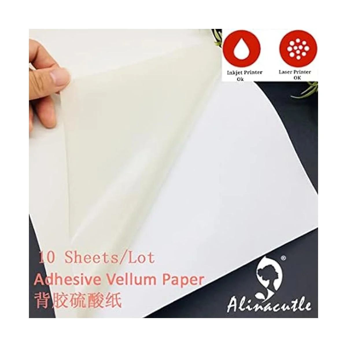 Alinacutle Papel de vitela autoadhesivo imprimible, papel de acetato adhesivo, calcomanías de bricolaje, para suministros escolares, manualidades, tarjetas, álbumes, álbumes de recortes, decoración del hogar, tamaño A4 8.3 x 11.5 pulgadas, 10paquete