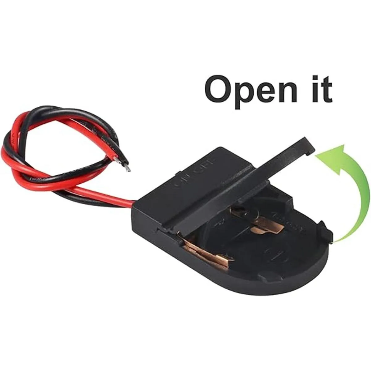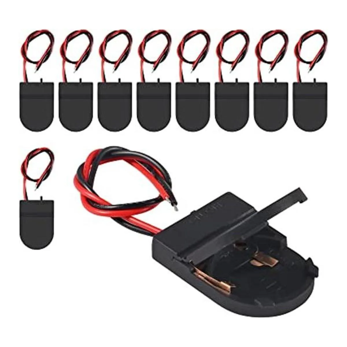 Alinan 10 soportes de batería con botón CR2032 1 soporte de batería de 3 V, caja de almacenamiento de batería con cables de encendido y apagado, contenedor de enchufe negro