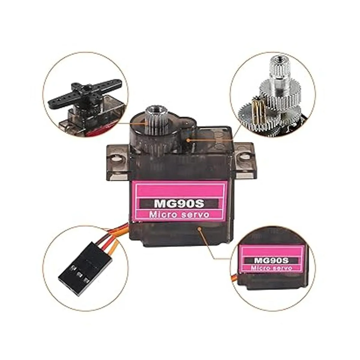 Características: Tipo de enchufe: JR, FUTABA General, engranaje de metal con menos ruido, los engranajes de metal ayudan con el movimiento, estos girarán la dirección adecuada