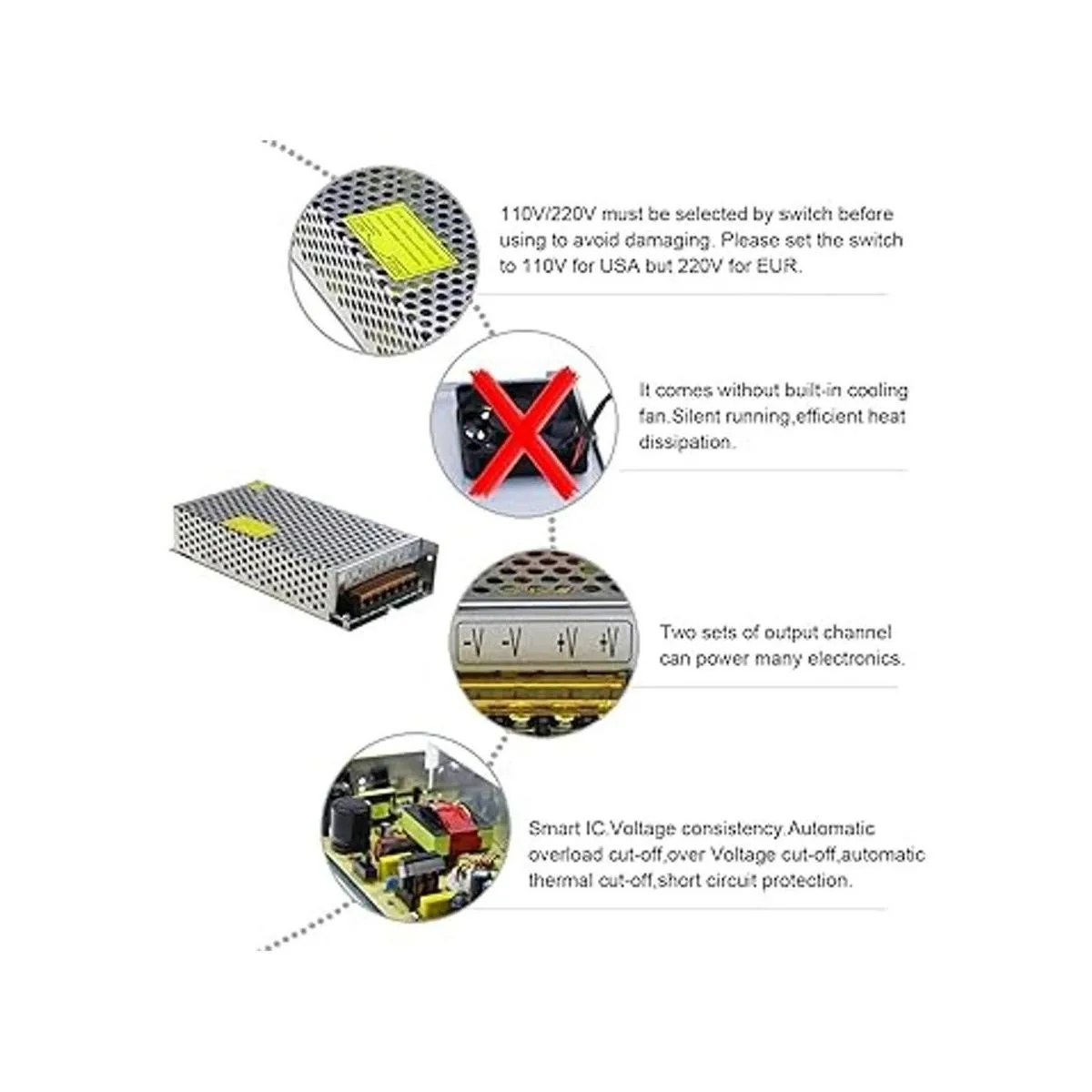 ALITOVE Adaptador de fuente de alimentación DC 12 V, 10 A, 120 W, interruptor de transformador, AC 110 V220 V a CC, 12 V, 10 amperios, controlador LED para tira de luz LED, sistema de seguridad de cámara CCTV