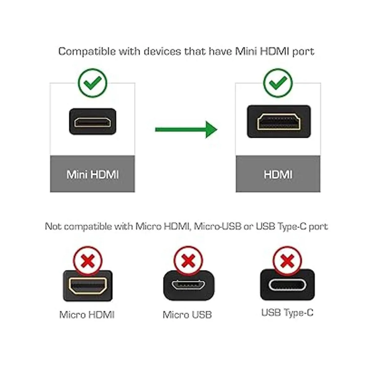 Cable Mini HDMI a HDMI de alta velocidad, cable HDMI A a C. Ten en cuenta que esto no es para conectores micro USB. Tu dispositivo debe tener un conector MINI HMDI.
