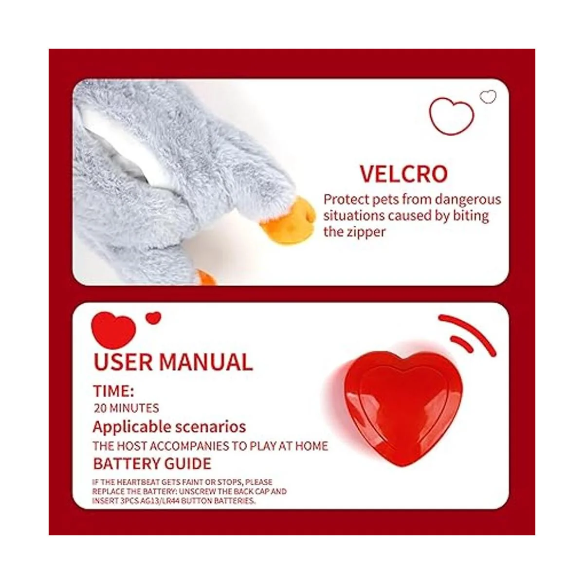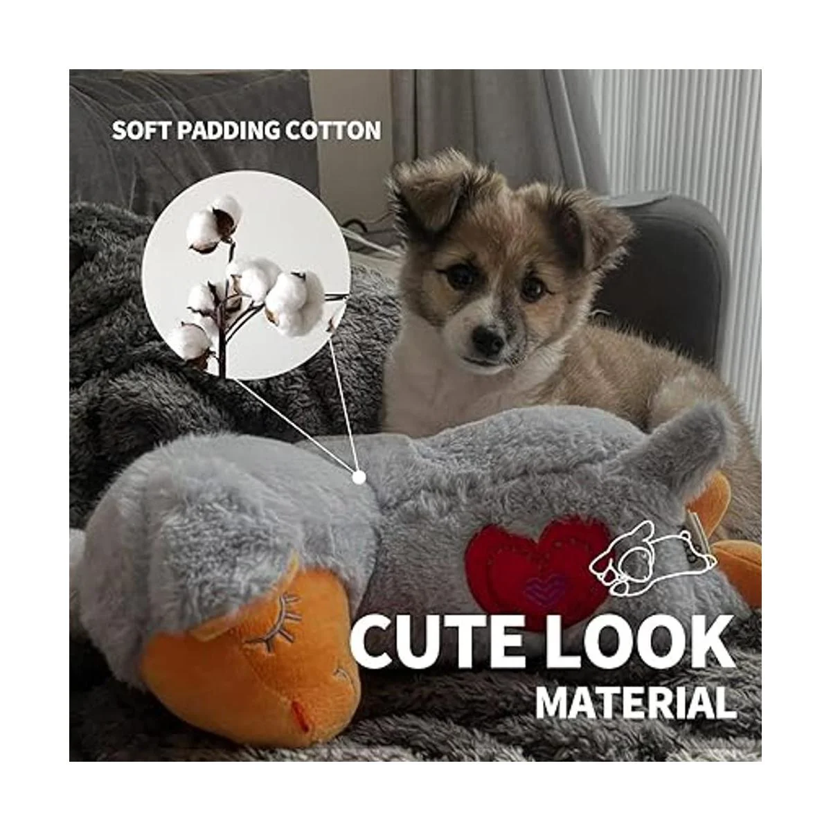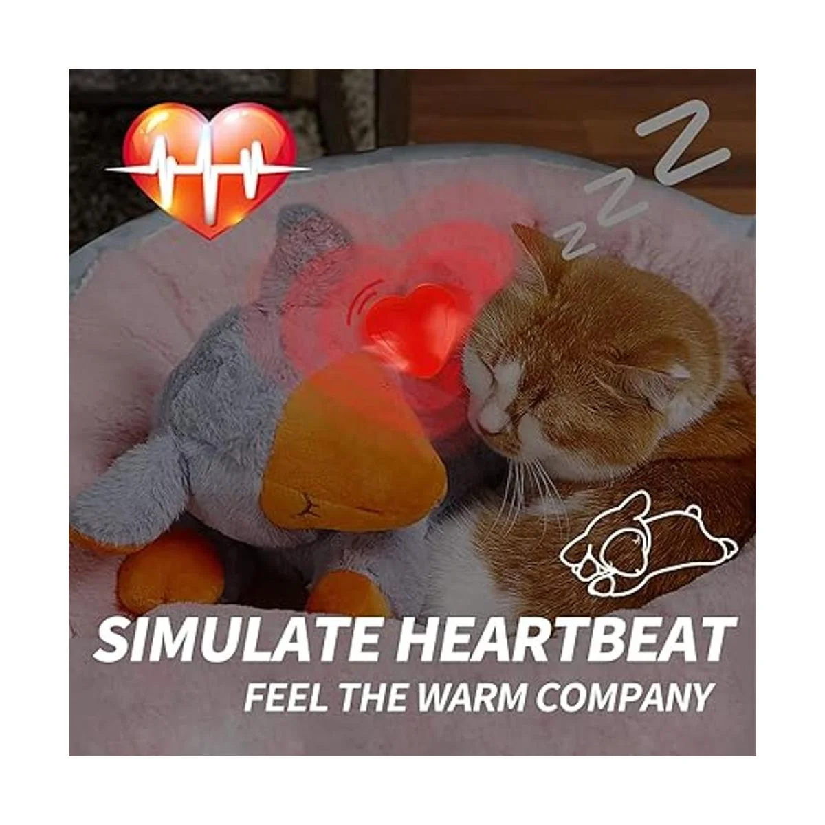 Los pequeños juguetes de animales con latido del corazón son una simulación del verdadero latido del corazón pulsante que permite al cachorro sentir el latido del corazón, reduciendo así su ansiedad y acostumbrarse a un nuevo hogar o tiempo difícil pronto.