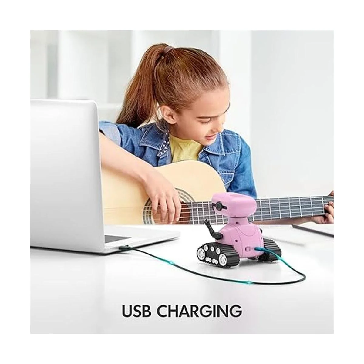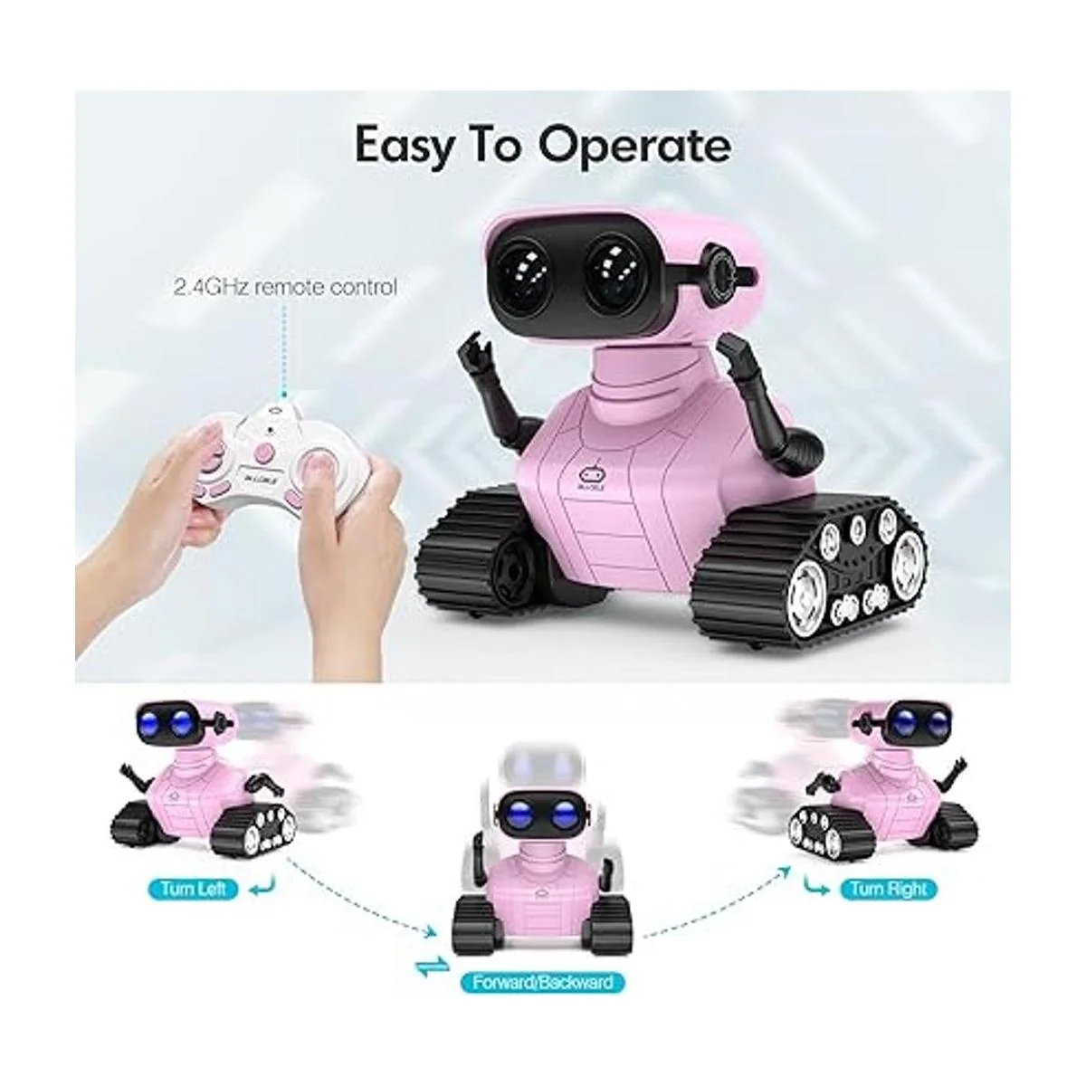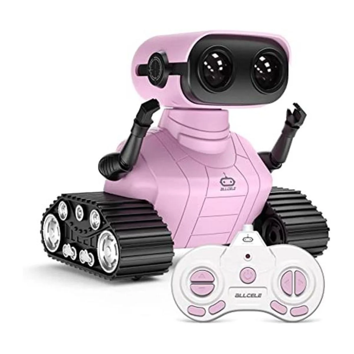 ALLCELE Robot de juguete a control remoto, recargable, con música y ojos de luces LED, regalo para niños a partir de 3 años, color rosado