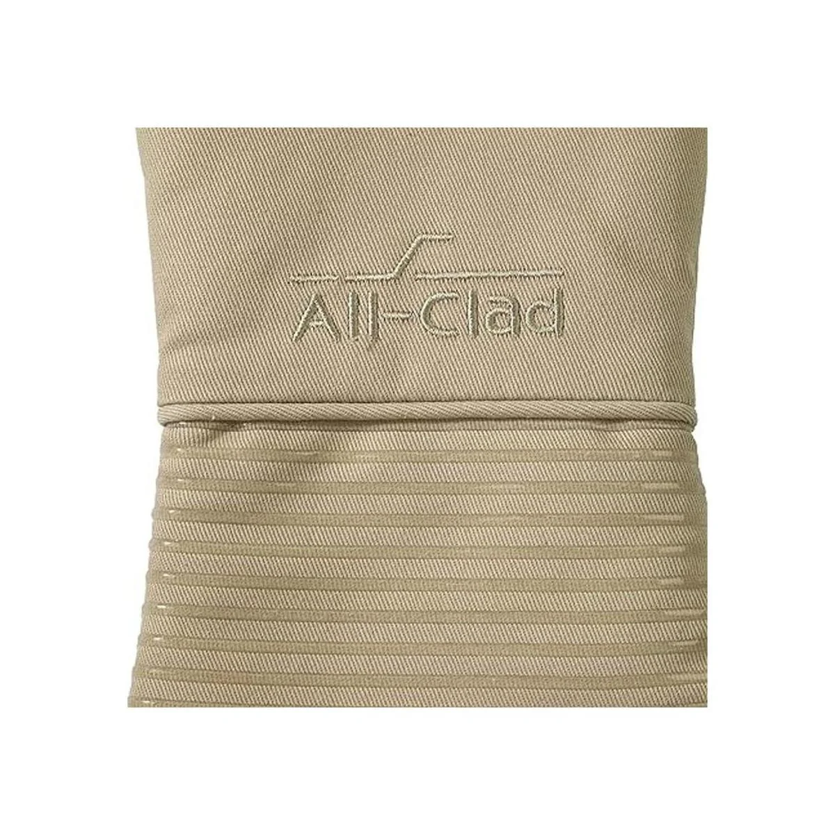 Colgar bucle aparece en la parte frontal para fácil almacenamiento; Bordado logotipo de AllClad; Acabado de sarga dobladillo Edge