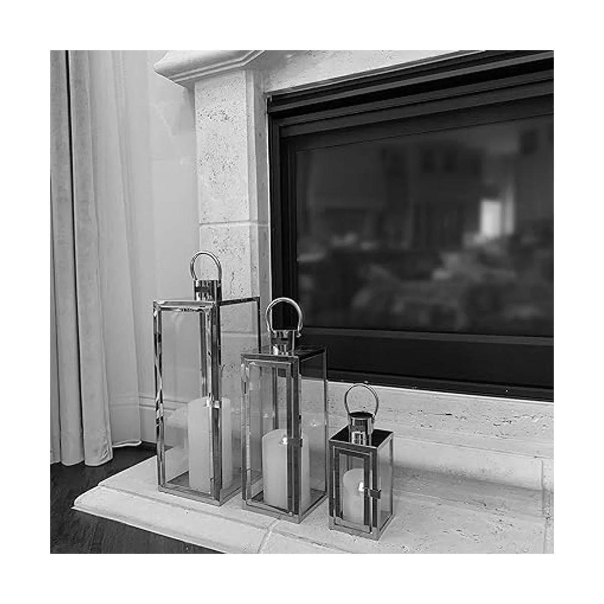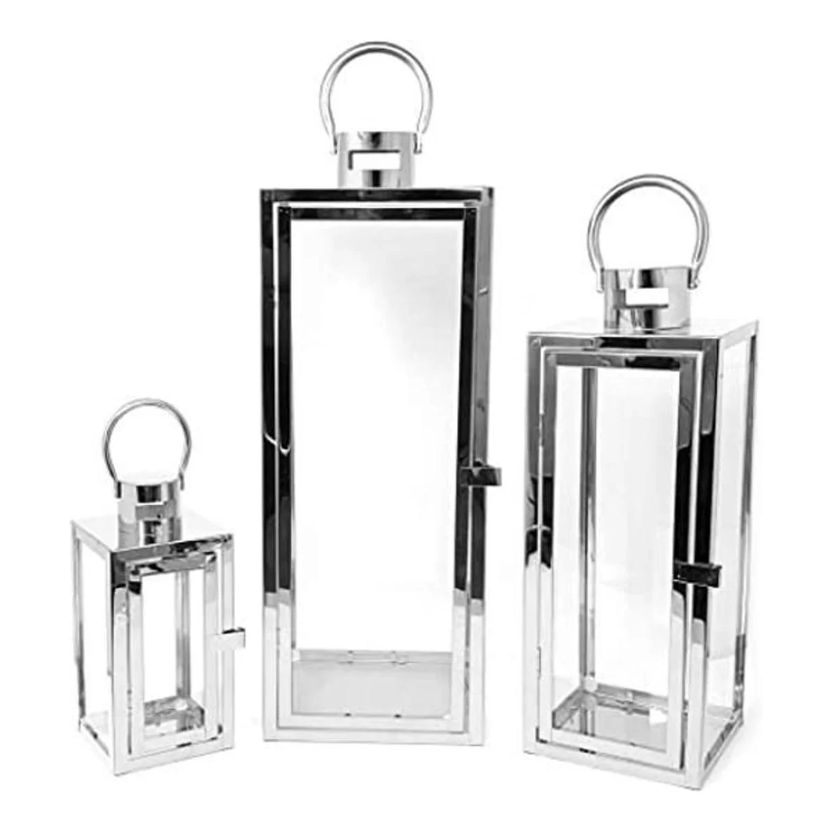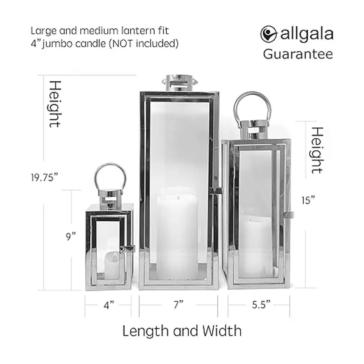 allgala Juego de 3 faroles extra grandes modernos y lujosos para interiores y exteriores, con estructura revestida en cromo y cristal templado