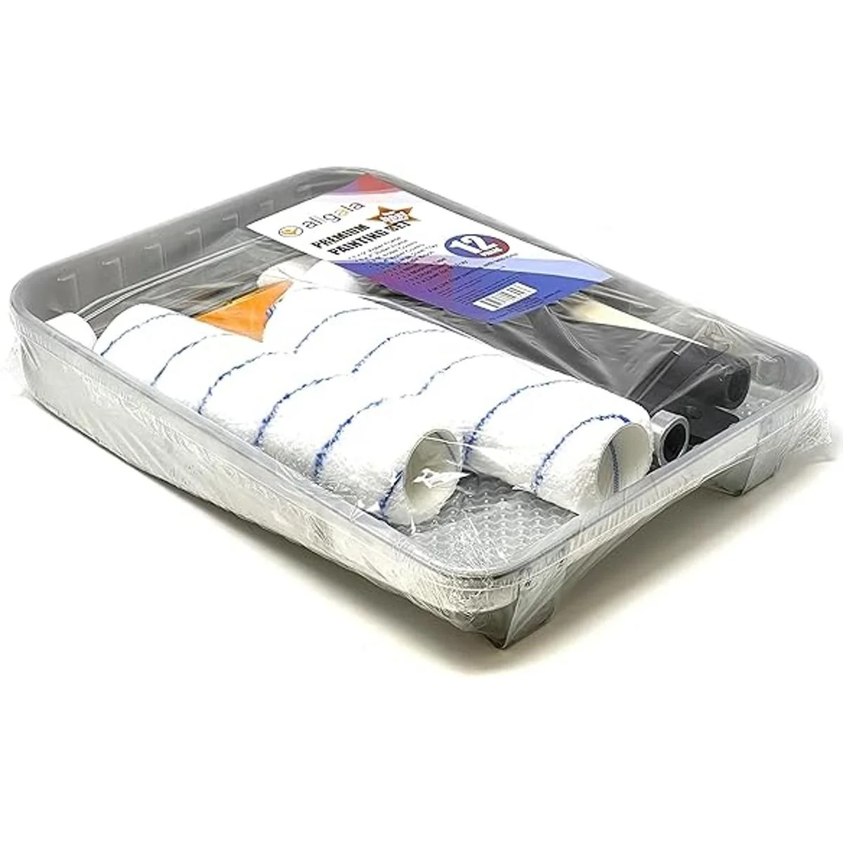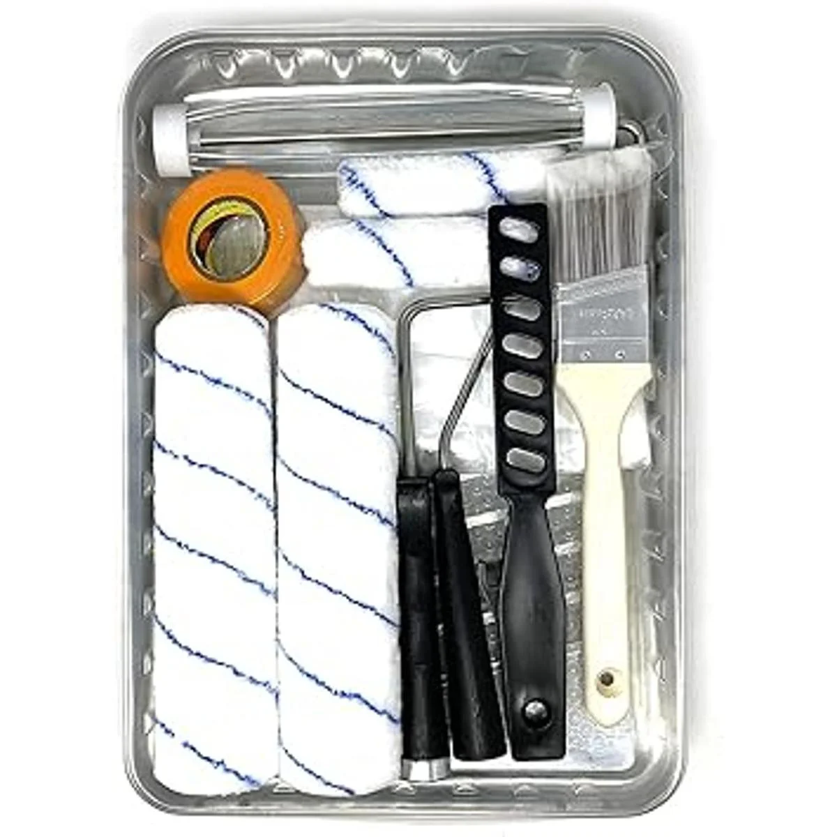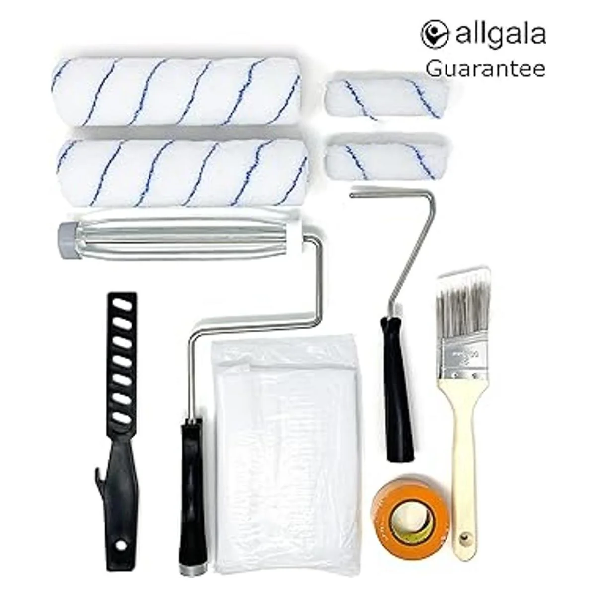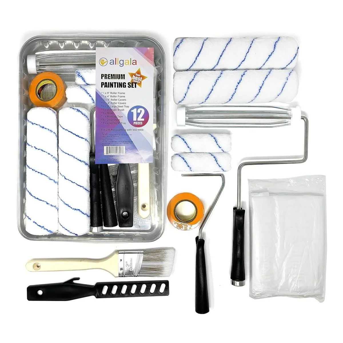 Allgala TH10302 Juego de rodillos de pintura 12 piezas, marco de rodillos, cubiertas, bandeja de acero, cepillo, mezclador, cinta de enmascaramiento, etc.