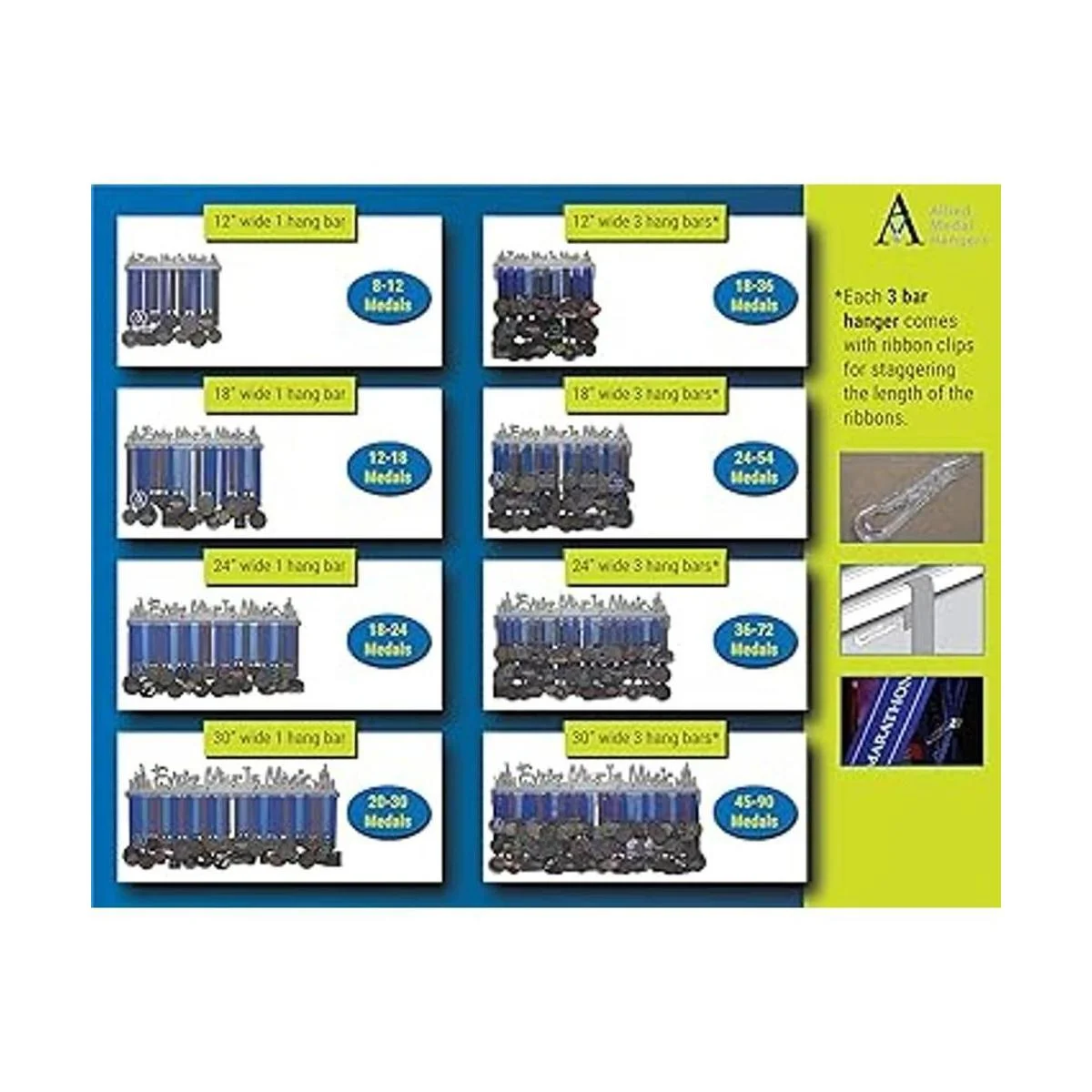 Diseño perfecto para una organización ideal: a diferencia de otros productos que utilizan ganchos para colgar medallas, nuestro diseño único, delgado y elegante de barra plana te permite un espacio adecuado para mostrar cada una de tus medallas ganadas, sin necesidad de apilar una sola una. Usar tus pantallas de lámpara como un lugar para almacenar tus medallas es cosa del pasado Cuelga 812 medallas.