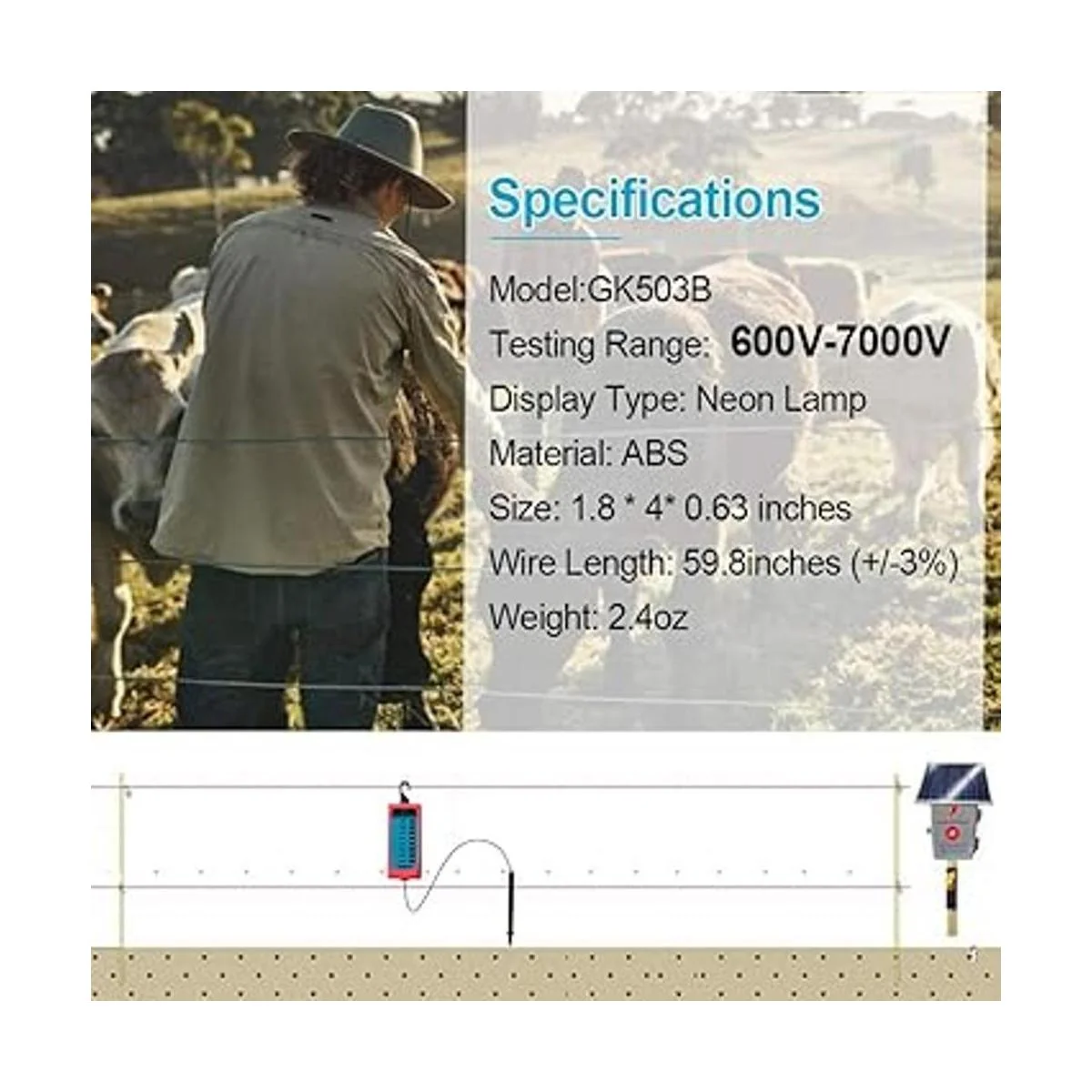 ALLOSUN GK503B Neon Probador de voltaje de valla eléctrica máximo de 7 kV, rojo