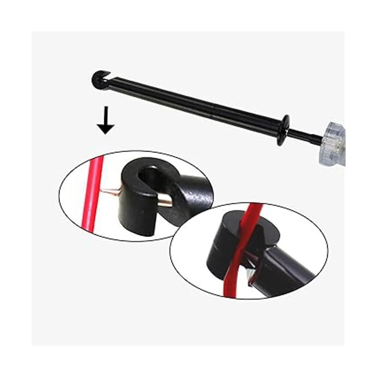 Funcionamiento manos libres: el probador tiene un gancho final para sujetar el cable para liberar tus manos para reducir el tiempo de inactividad y aumentar la productividad; se puede utilizar como una sonda por sí sola quitando la funda de plástico que engancha el cable o como una sonda y gancho que perfora el alambre.