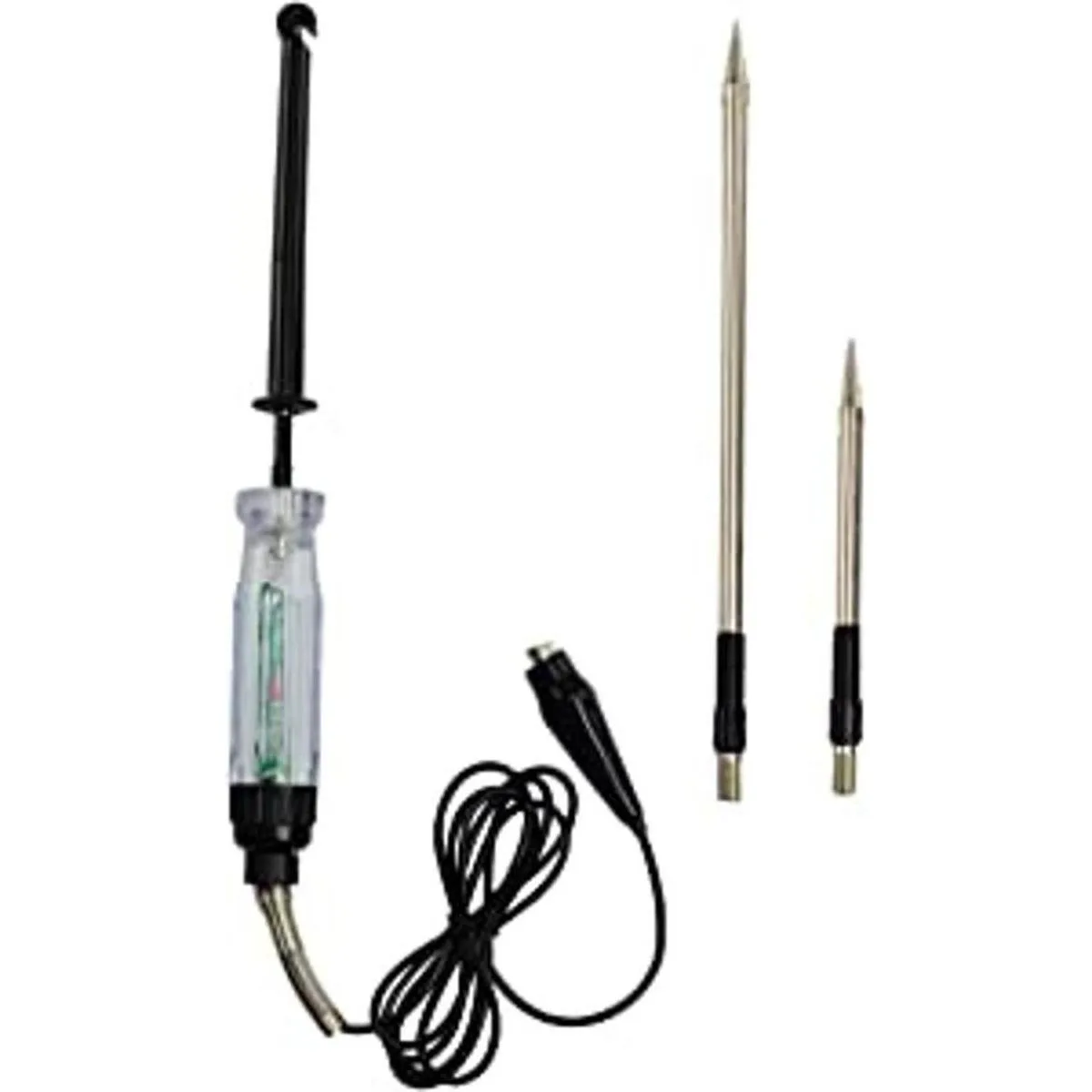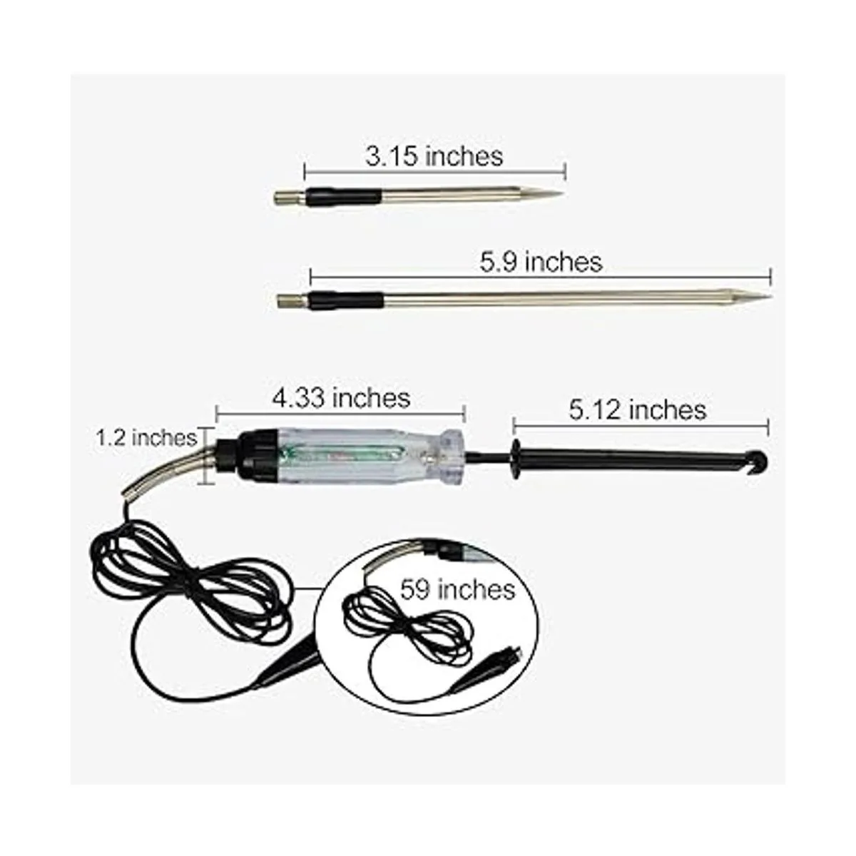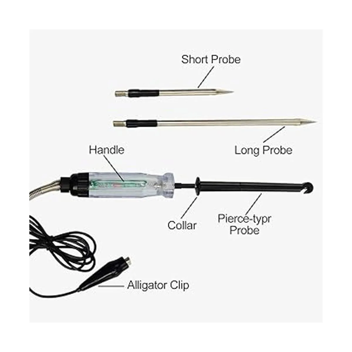 Compromiso seguro: el diseño de la cubierta del gancho evita que te apuñales tu propio dedo al colocar el probador en un alambre; el cable está aislado para resistencia al calor y al aceite y uso seguro; construido con una sonda delgada de acero inoxidable para perforar y bloquear el alambre, incluso en zonas de difícil acceso.