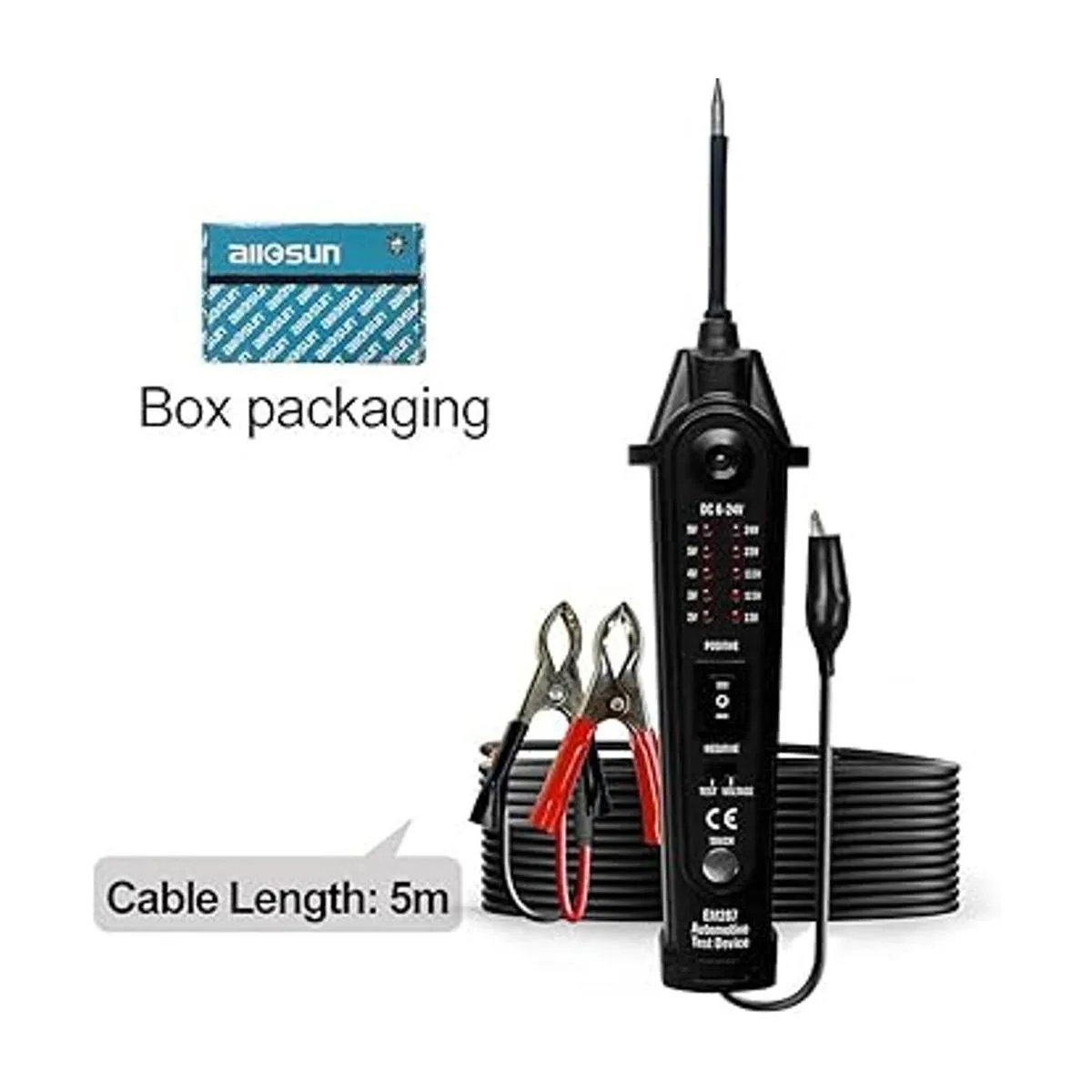 ALLOSUN Probador de circuito eléctrico automotriz DC 224V EM287 Dispositivo de prueba de diagnóstico del sistema eléctrico automático, color negro