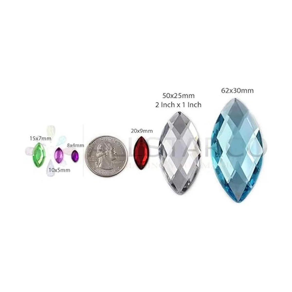 50 piezas de diamantes de imitación de acrílico plástico, tamaño: 0.354 x 0.787 in o aproximadamente 11/32 x 3/4 pulgadas