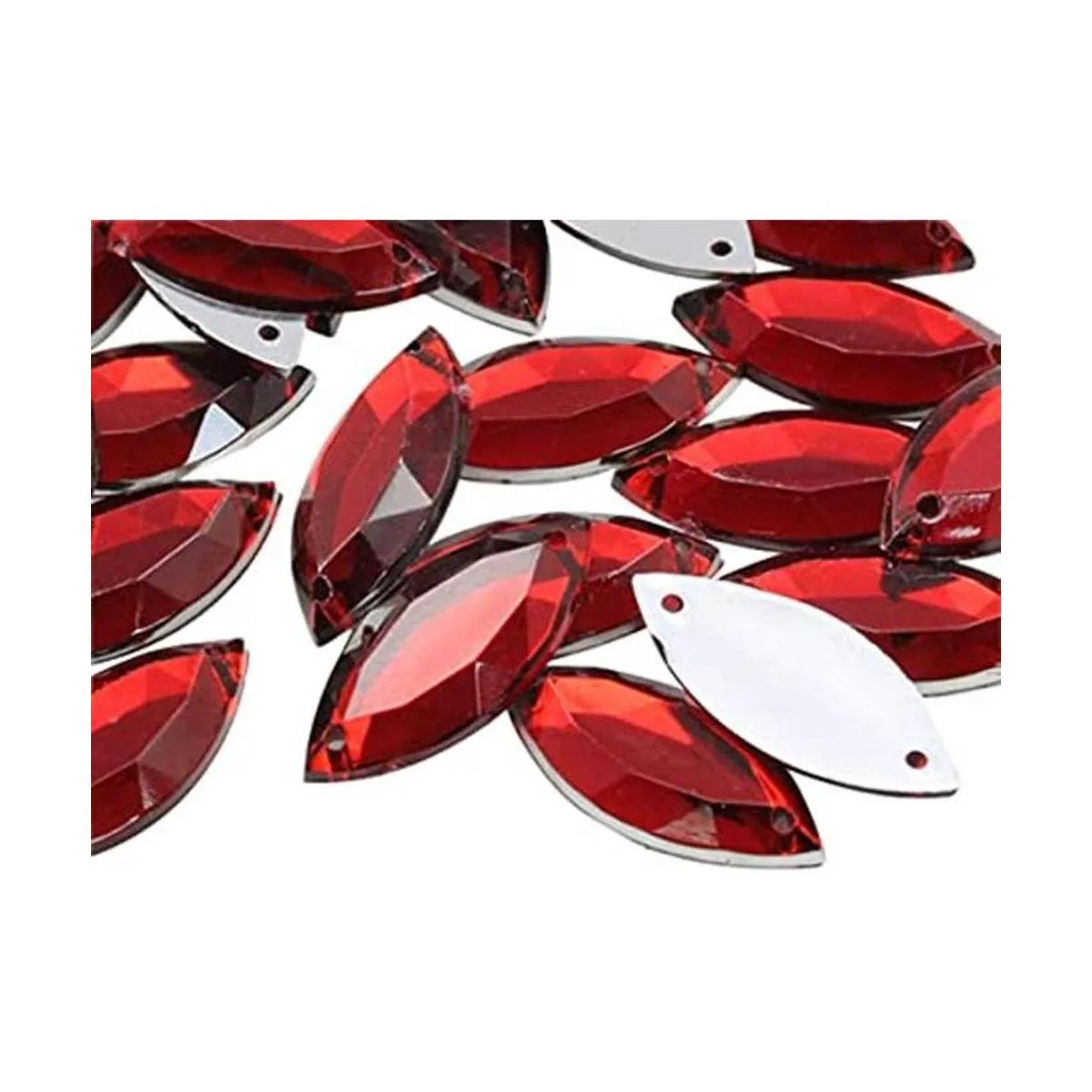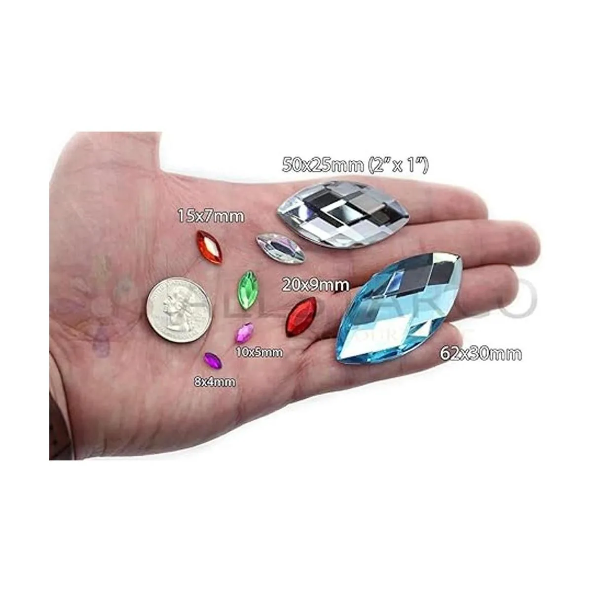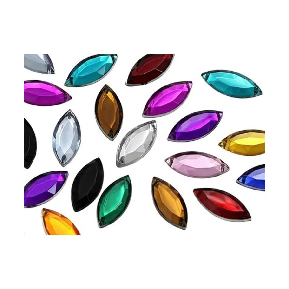 Allstarco Cuentas de plástico con parte trasera plana CH17 Navette de 0.787 x 0.354 in, para manualidades, diamantes de imitación acrílicos de plástico con agujeros para coser, adornos de ropa, disfraces de 50 piezas