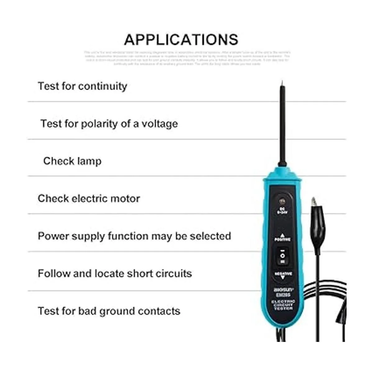 Amplia aplicación: el probador de circuito eléctrico automotriz puede probar la continuidad. Prueba la polaridad de un voltaje. Comprueba los interruptores, relés y el encendido y apagado de diodos, fusibles y circuitos. Prueba de polaridad de cables eléctricos y enchufes. Rastrea y localiza cortocircuitos. Prueba para detectar contactos con el suelo defectuosos.