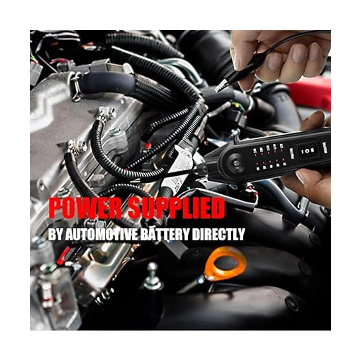 Fácil de usar: herramienta de prueba eléctrica para coche, es fácil de usar. Batería directamente por la batería del vehículo. La función de iluminación permite al técnico automotriz probar el sistema eléctrico en la oscuridad.