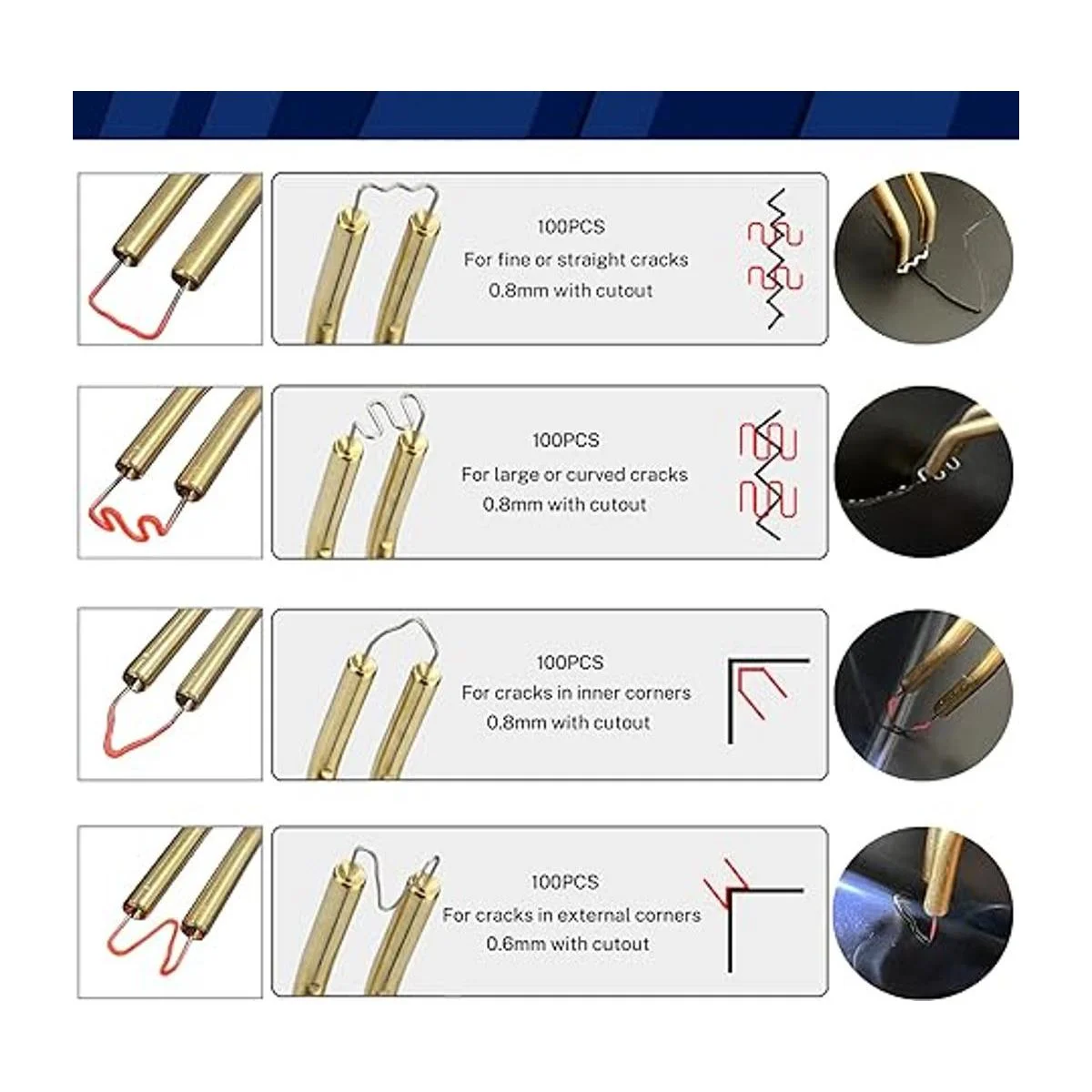 Amplia aplicación, adecuado para reparar parachoques, salpicadero, soporte de lámpara, anillo de plástico, radiador, coche y dispositivo de plástico de motocicleta.