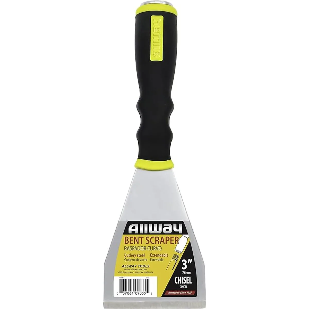 La hoja gruesa de 3 pulgadas está compuesta de acero al carbono y tiene un borde de cincel para trabajos de gran tiempo