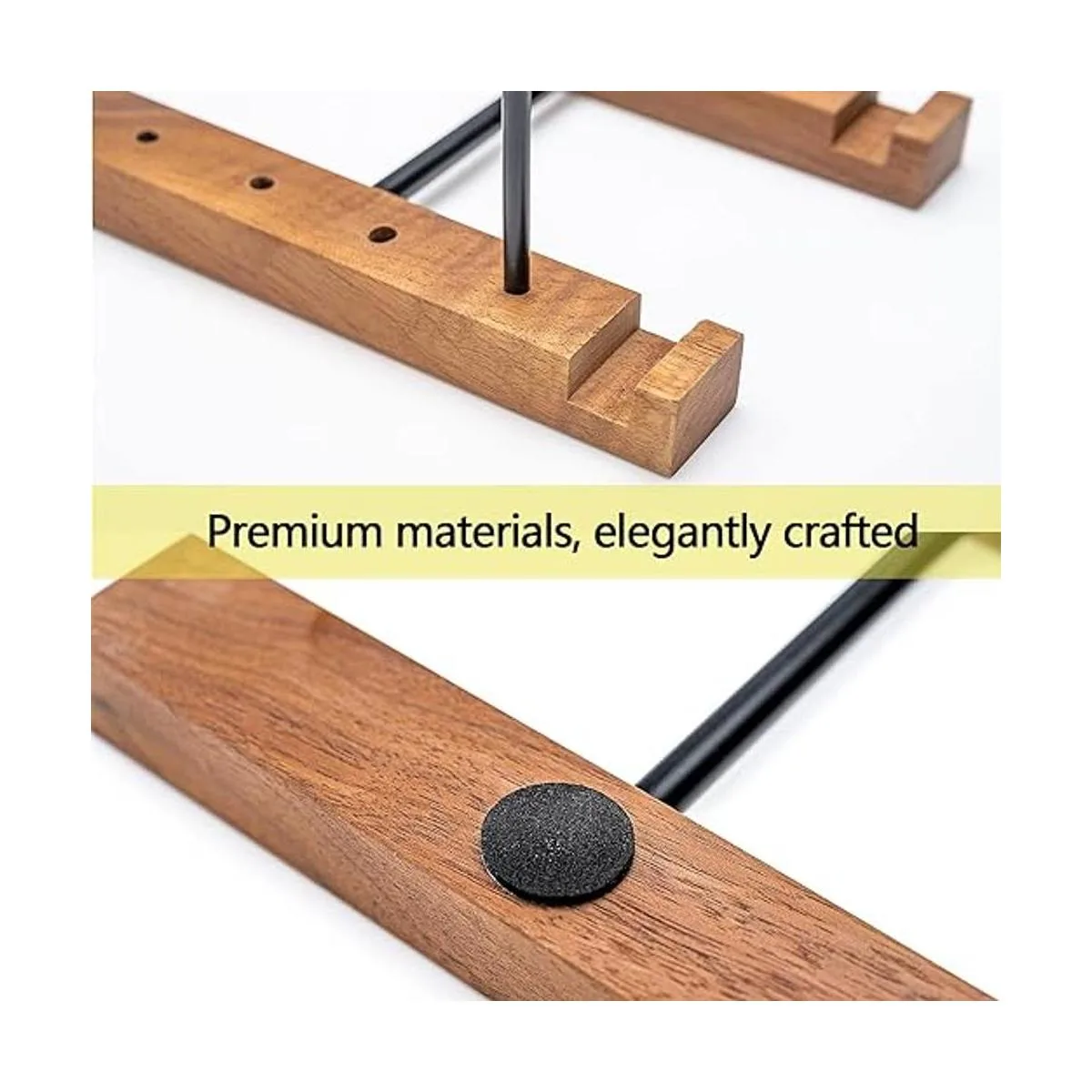 Material elegante: hecho de nogal negro de alta calidad acero inoxidable lacado negro, perfecto más fuerte, más estable, más estilo de negocios, ribete de aceite, más suave después del pulido, nuestra solución de almacenamiento de discos de vinilo complementa tu decoración