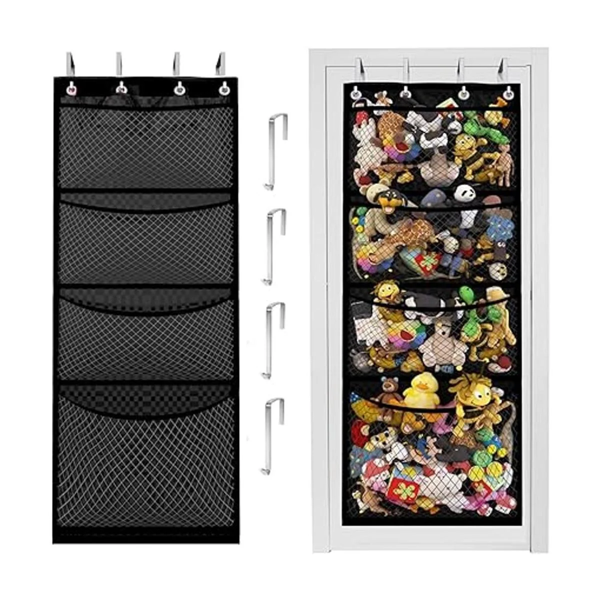 Almacenamiento para animales de peluche, organizador sobre la puerta para rellenos, accesorios de bebé y almacenamiento de felpa de juguete, fácil instalación con bolsillos de almacenamiento transpirables para colgar, silla para niñas grandes, bolsa grande para niños pequeños