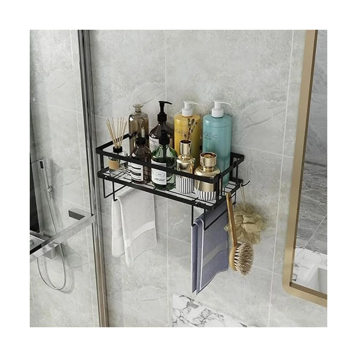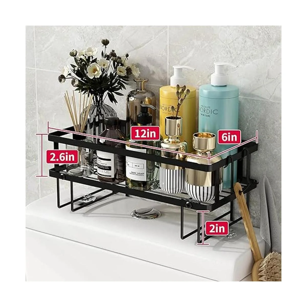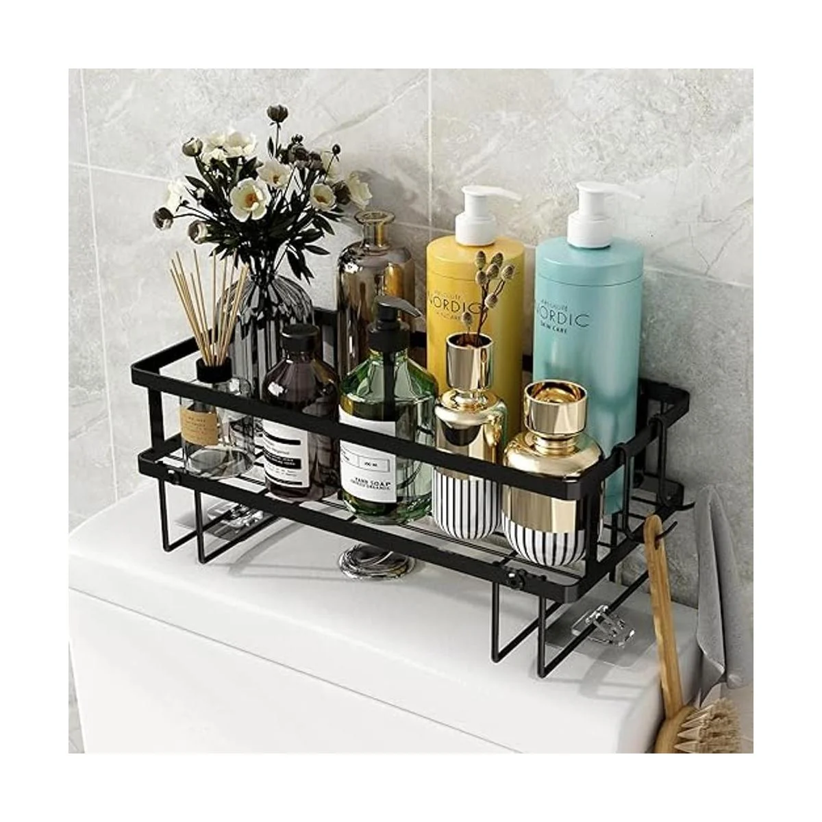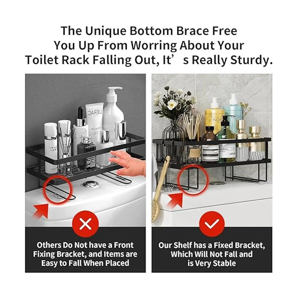 Almacenamiento sobre el inodoro, estantes organizadores de baño Godboch, estante multifuncional para inodoro, ahorro de espacio sin taladrar con diseño de montaje en pared negro