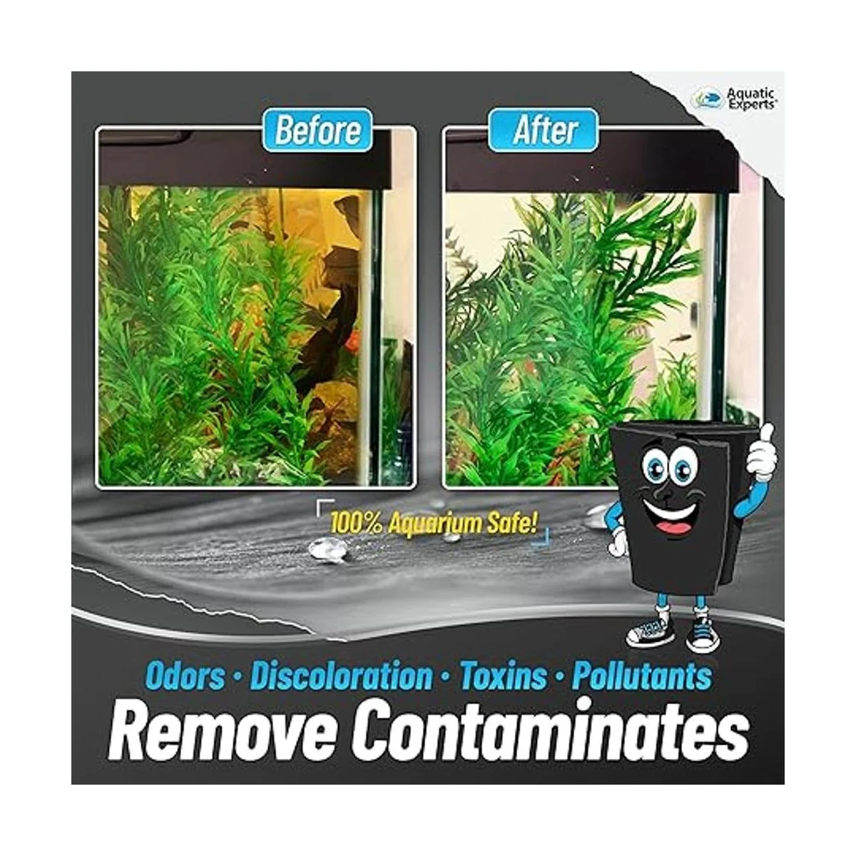 Elimina el olor y la decoloración. Carbón activado, también conocido como carbón activado, elimina los malos olores del agua del acuario y del estanque dejando un olor limpio. El fino revestimiento de carbono crea una gran superficie para que el carbono atrape y elimine la decoloración del agua, medicamentos residuales, toxinas, contaminantes y más para mantener tu agua cristalina.