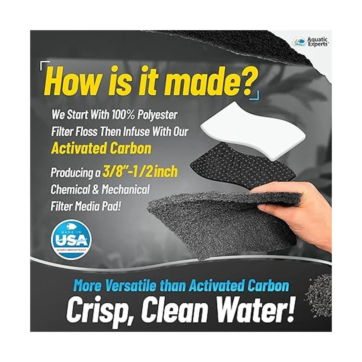 Fácil de usar: la almohadilla de filtro de carbón activado sustituye al carbón suelto en tu acuario. Nuestras almohadillas de filtro de carbón funcionan el mismo trabajo que los gránulos de carbón activado sin el desorden de partículas de carbono derramadas y polvo de carbono en tu acuario. Corta la almohadilla de carbono de tu acuario para adaptarse a tu filtro, enjuaga y está lista para usar