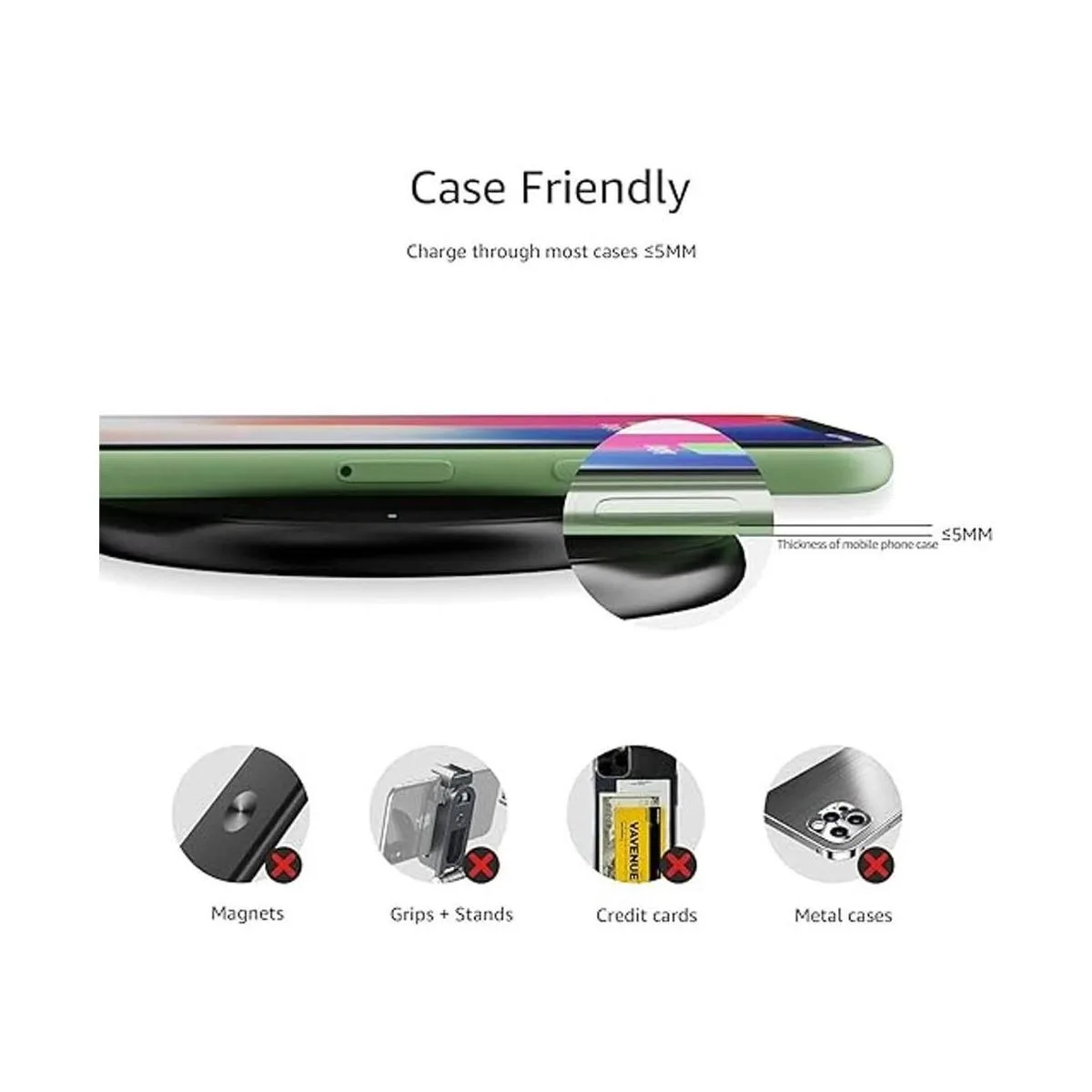 Compatible con fundas: transmite energía a través de la mayoría de fundas protectoras solo fundas de goma/plástico/TPU de menos de 0.197 in de grosor; fundas magnéticas y de metal o tarjetas de crédito evitarán la carga