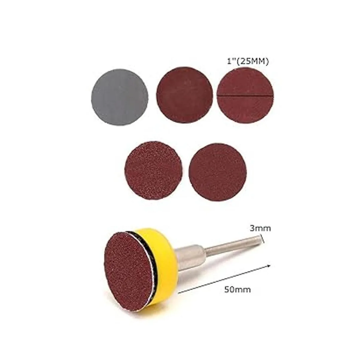 Almohadilla de discos de lija de 0.984 in, 100 papeles de lija de grano 100 3000 con almohadilla de respaldo de vástago de 18 pulgadas para herramientas rotativas de molino de taladro 1 pulgada
