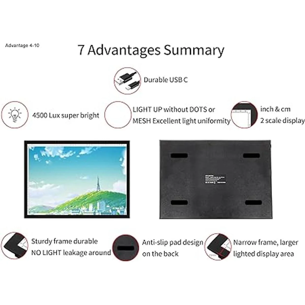 Súper brillante y excelente efecto de visualización: la almohadilla de luz de diamante de brillo máximo puede alcanzar 4500 lux, puede escribir fácilmente a través de 21.16 oz de grosor de papel, mientras que utiliza una placa guía de luz avanzada para iluminar sin puntos o sombra, con una excelente uniformidad de luz.