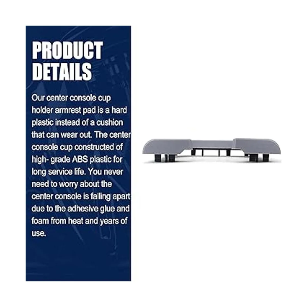 Calidad: nuestra almohadilla para reposabrazos de consola central es de plástico duro en lugar de un cojín que se puede desgastar. La taza de la consola central está fabricada con plástico ABS de alta calidad para una larga vida útil. Nunca tendrás que preocuparte de que la consola central se deshaga debido al pegamento adhesivo y la espuma del calor y años de uso.