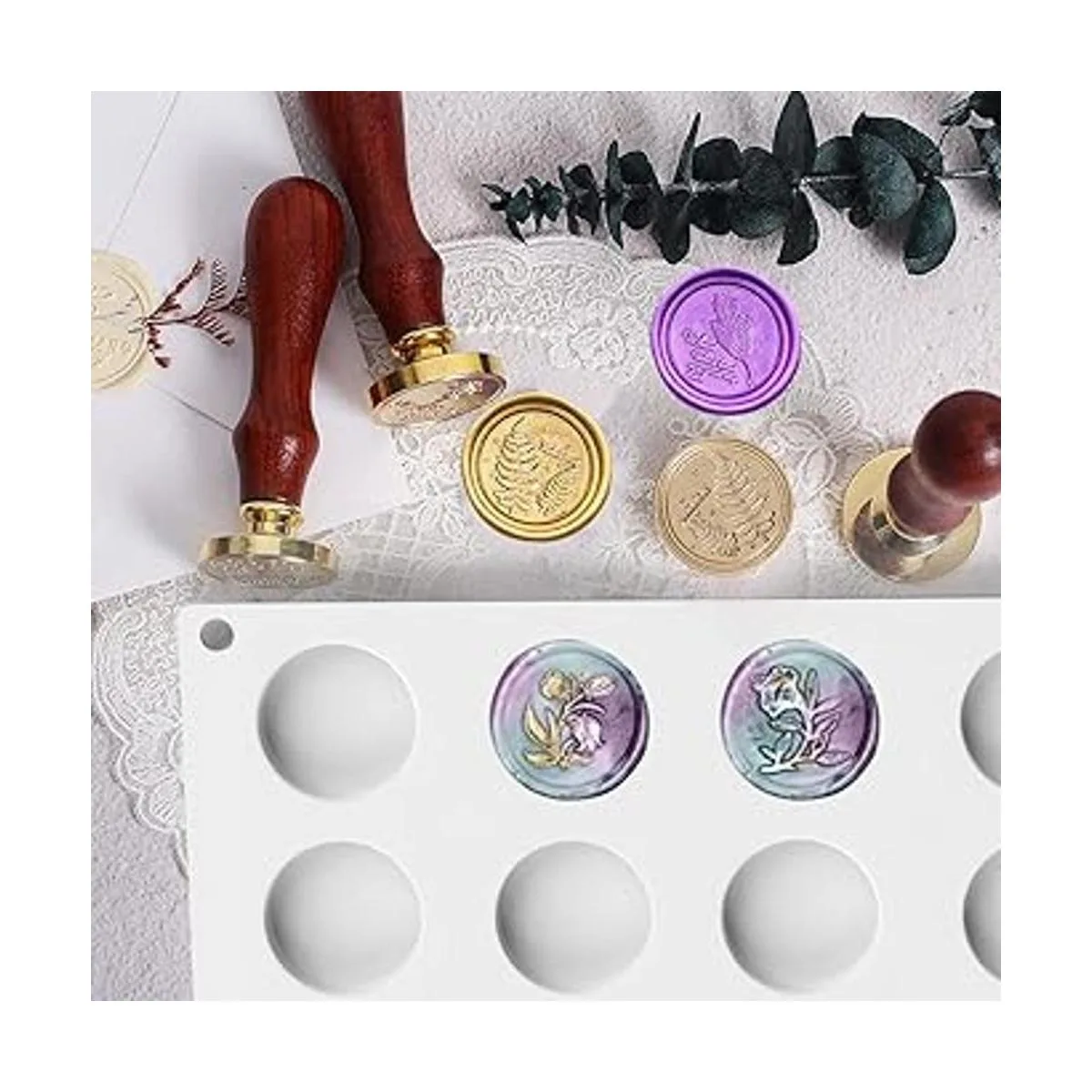 Kit de sellado de cera de regalo: contiene una almohadilla de molde de silicona y 50 puntos adhesivos extraíbles de doble cara. Tamaño de la alfombrilla de sellado de cera: 11.6 x 6.7 pulgadas, tamaño de cada cavidad: diámetro de 1.35 pulgadas, cada adhesivo de doble cara: diámetro de 1 pulgada, adecuado para la mayoría de las calcomanías de sellado de cera es una herramienta indispensable para hacer sellos de cera, perfecto para los amantes y principiantes.