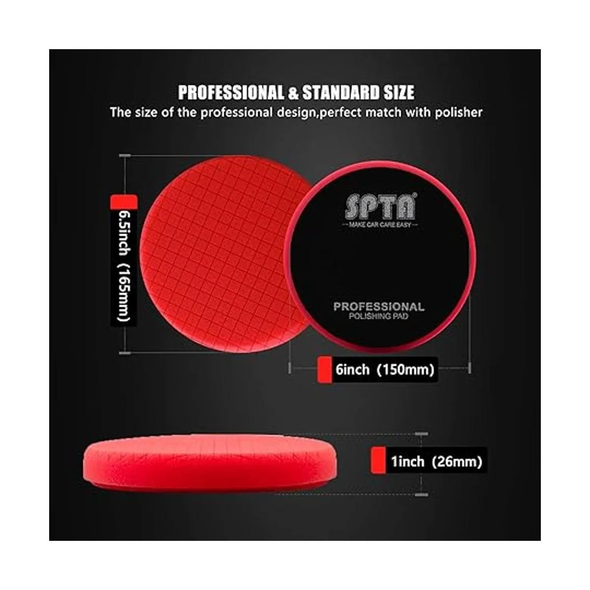 Almohadillas de pulido con acabado rojo, almohadillas de pulido, SPTA 3 piezas de cara de 6.5 pulgadas para placa de respaldo de 6 pulgadas y 5.906 in para pulidor de automóvil, compuesto, pulido y depilación X00224R6B3