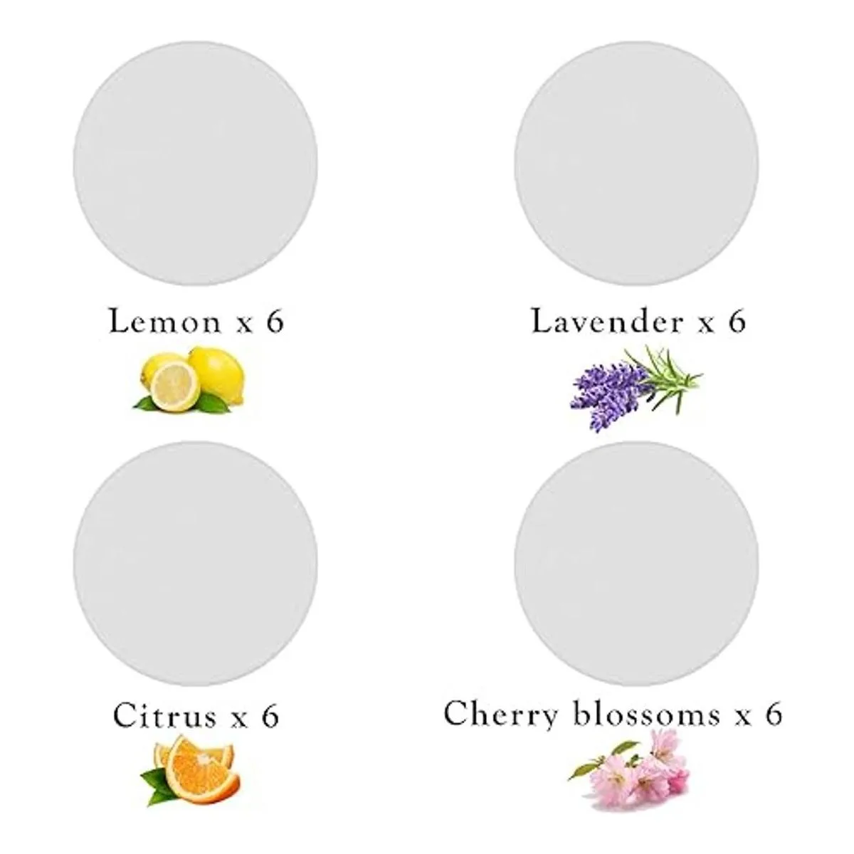 Almohadillas perfumadas de repuesto para fregona de vapor, 4 discos de fragancia diferentes, compatibles con Bissell Powerfresh y Symphony Series se adapta al modelo 1940, 1806, 1132 fragancias frescas, 24 piezas