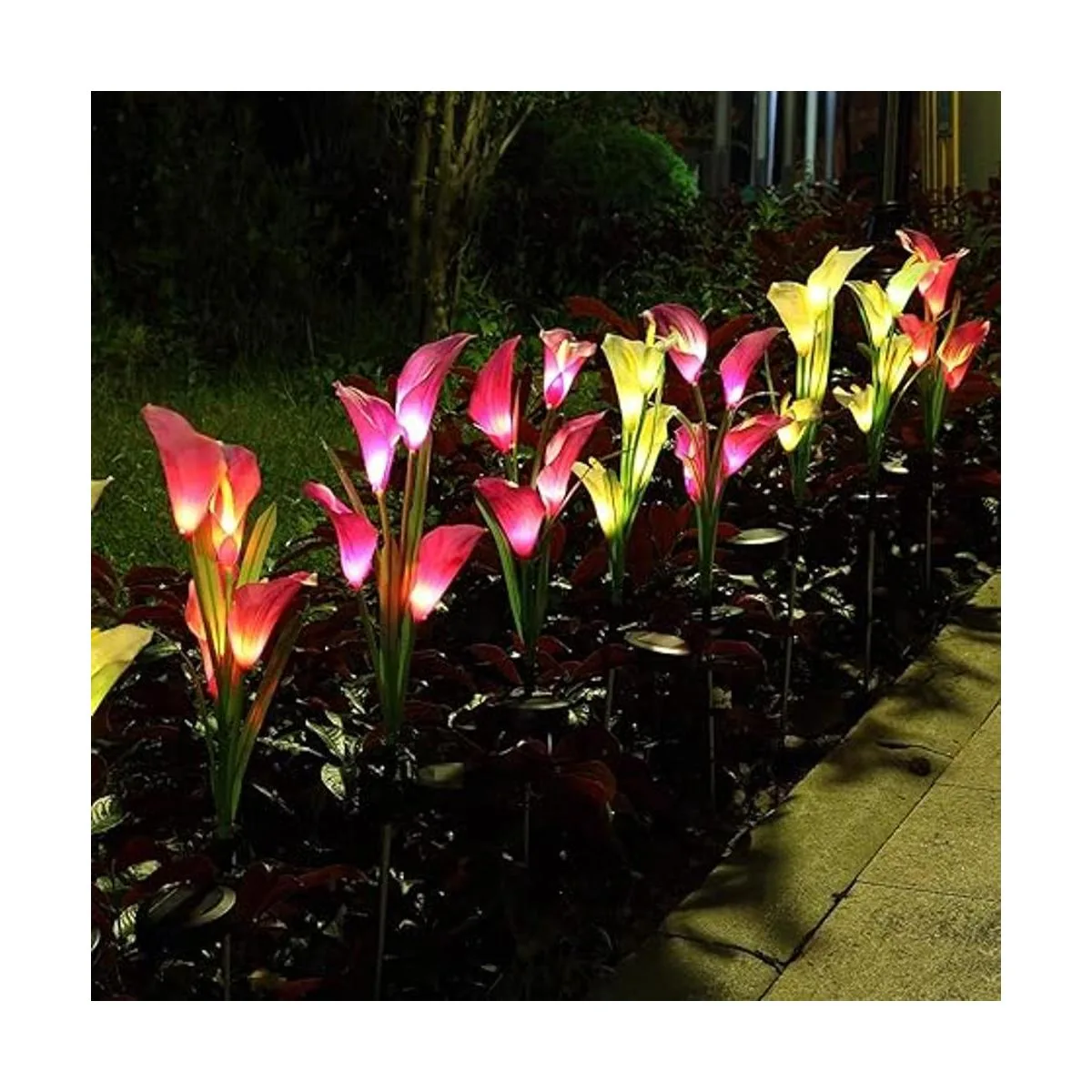 7 colores de cambio automático: Estas estacas de luz con forma de lirio de cala cuentan con 7 colores cambiantes, se iluminan automáticamente en la oscuridad para iluminar tu jardín y sendero. Perfecto como luces de sendero y luces en el suelo; adecuado para el jardín, árboles, flores, canteros, vallas, pasarelas. Decora la noche oscura de manera más colorida.