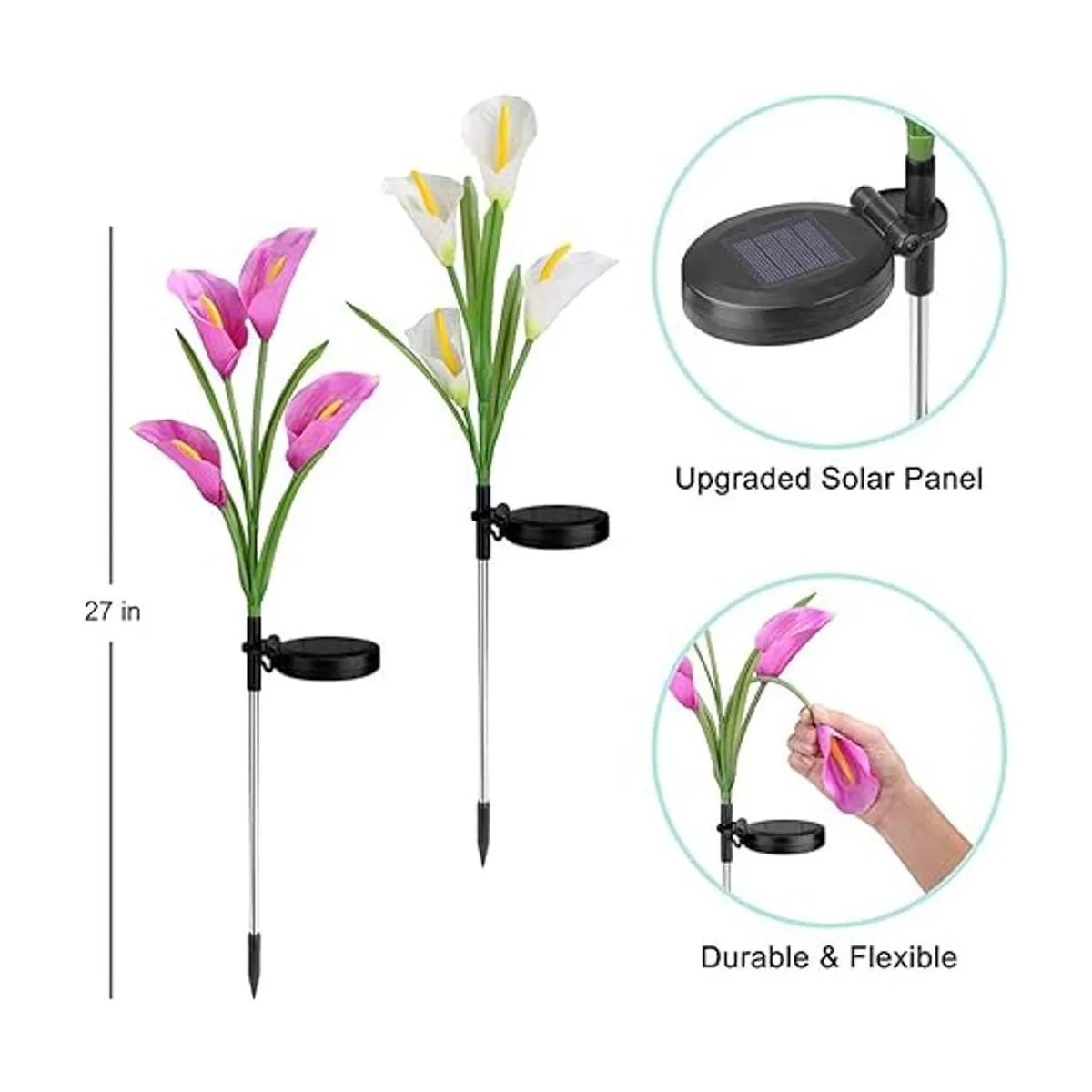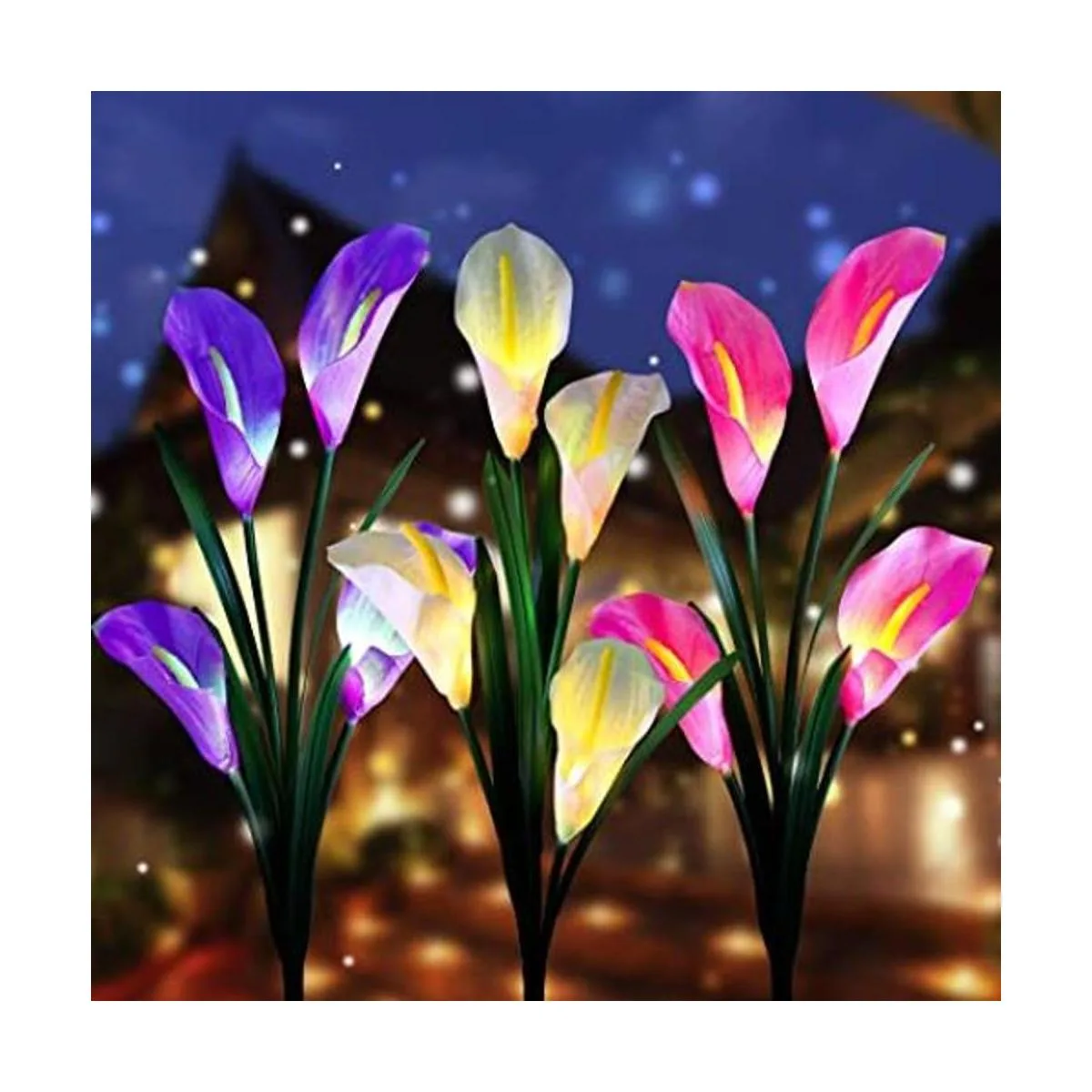 Aloudy Luces solares para jardín 3 unidades, impermeables, 12 flores de lirio cala, 7 colores cambiantes, luces solares LED para jardín, patio, patio trasero, color morado y blanco