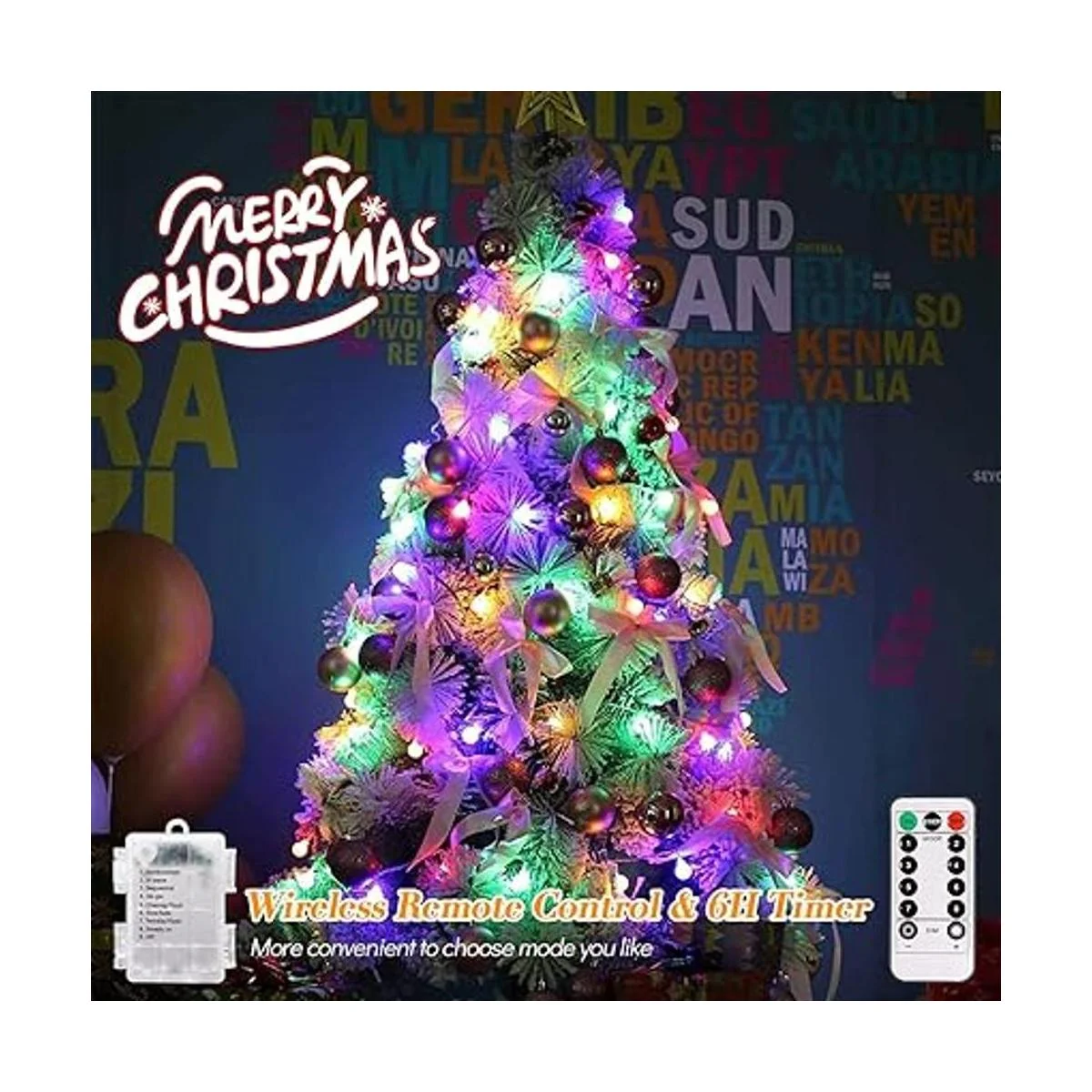 ALOVECO Cadena de luces LED de 18 pies, 50 luces LED alimentadas por pilas con control remoto, 8 modos, impermeables, luces de hadas estrelladas para exteriores, interiores, dormitorio, jardín, Halloween, fiesta de Navidad multicolor