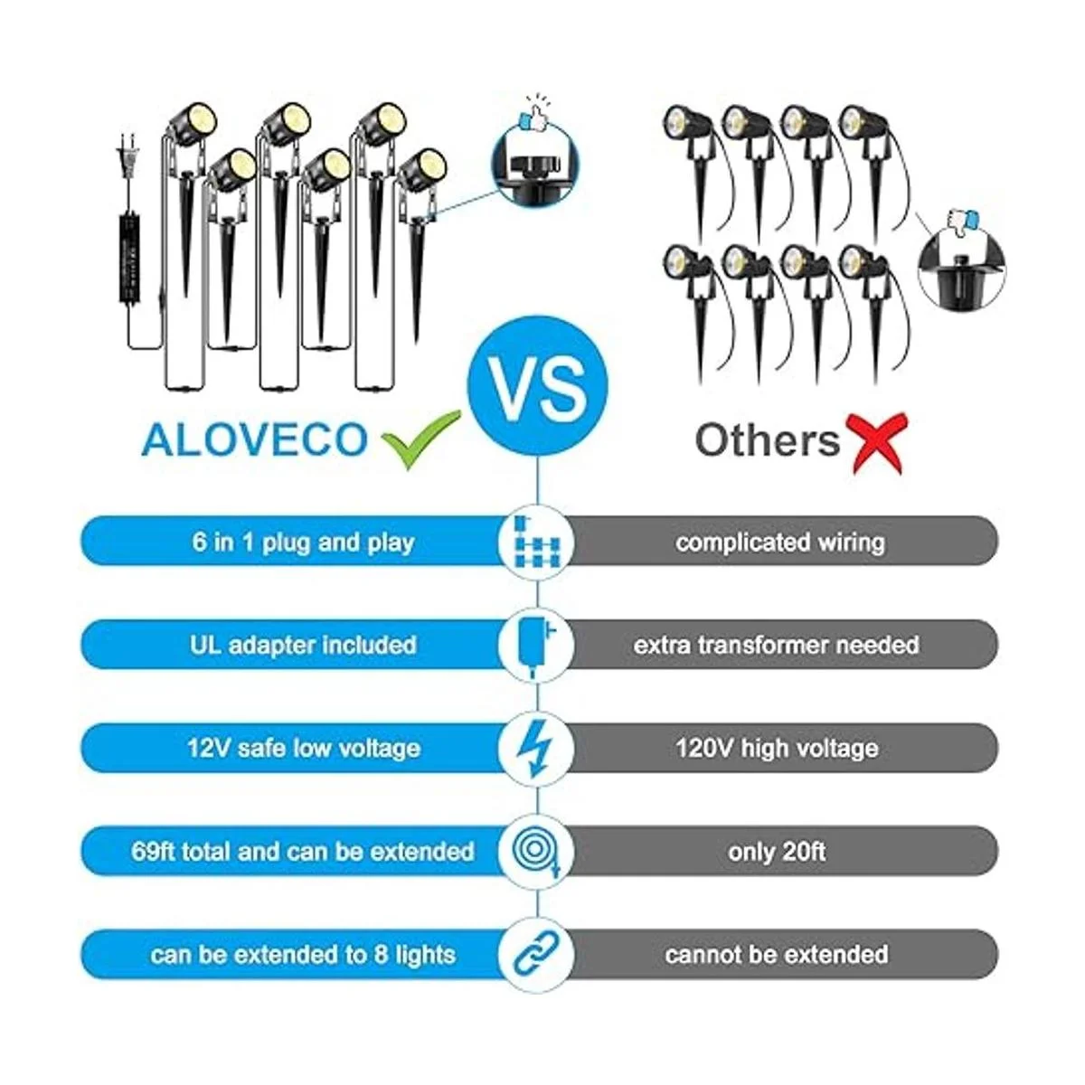 2 años de garantía de reemplazo gratuito ALOVECO está muy seguro de estos focos LED para exteriores, ya que les ofrece una garantía de 2 años, reemplazo gratuito de 1 mes y garantía de soporte posventa de por vida. Si tienes alguna pregunta sobre nuestras luces de paisaje de bajo voltaje, solo tómate un poco de tiempo para enviarnos un correo electrónico, te prometemos ofrecerte una solución 100 satisfactoria.