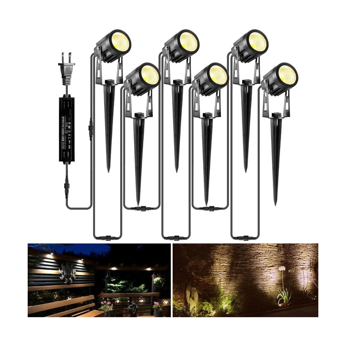 ALOVECO Iluminación de paisaje, luces de paisaje de 12 V, luces de jardín de bajo voltaje, impermeables, 1800 lúmenes, foco LED para exteriores, enchufe para patio, terraza, patio, pared de árbol blanco cálido, conectable, 65.3 pies, 6 paquetes